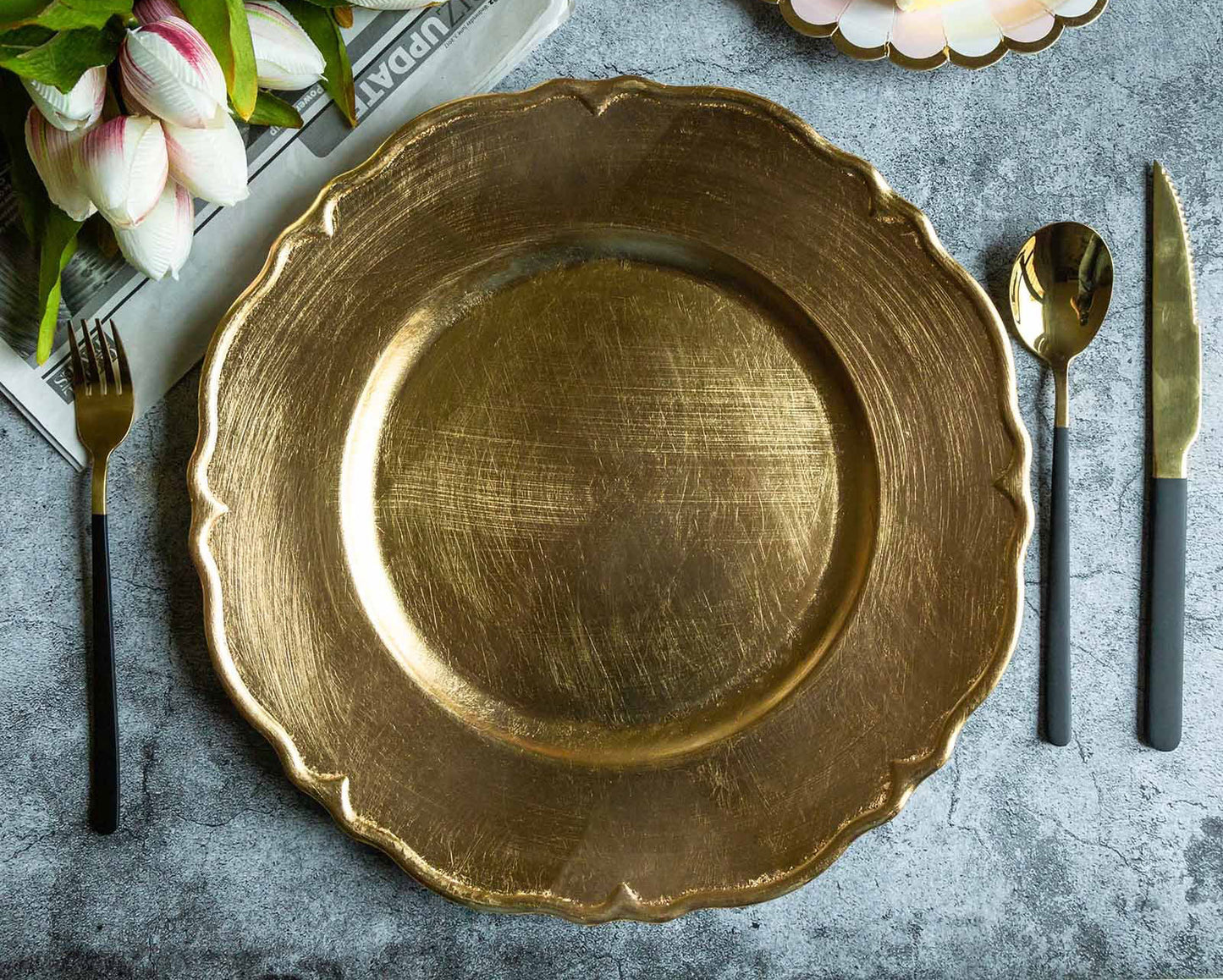 Gold Wavy Edge Plastic Charger Plates 13 inches diameter.