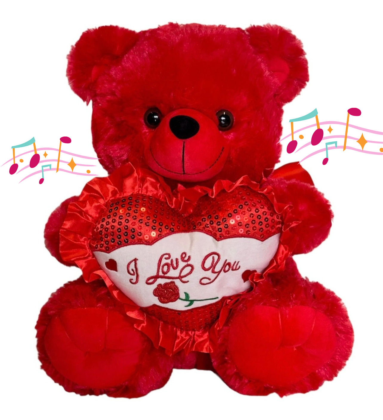 15" Musical Valentine Bear Red with I Love You Heart and Light Up Cheek (1 Piece)