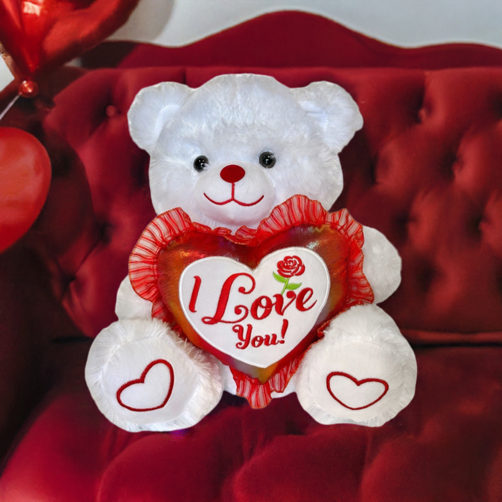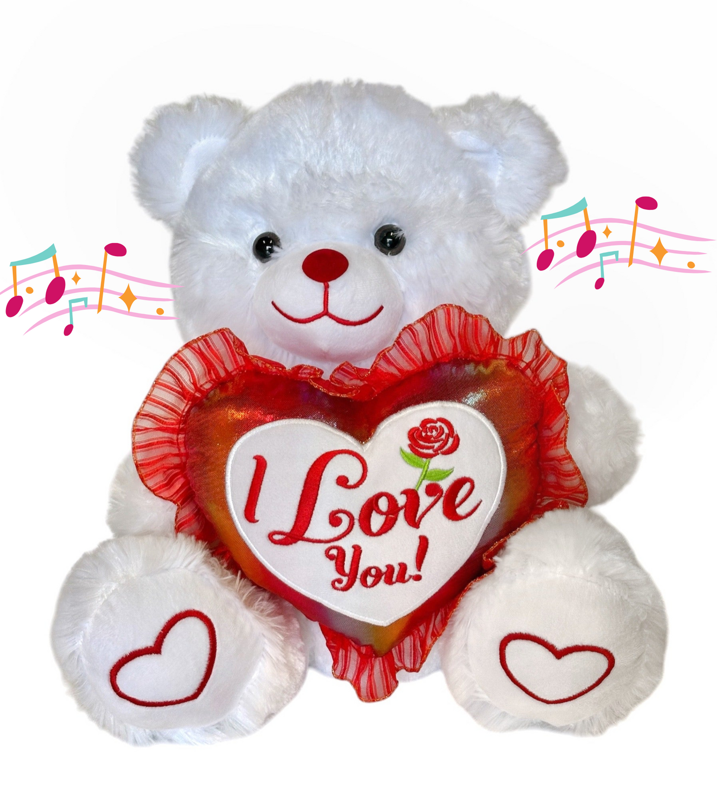 15" Musical Valentine Bear White with I Love You Heart & Light up cheek