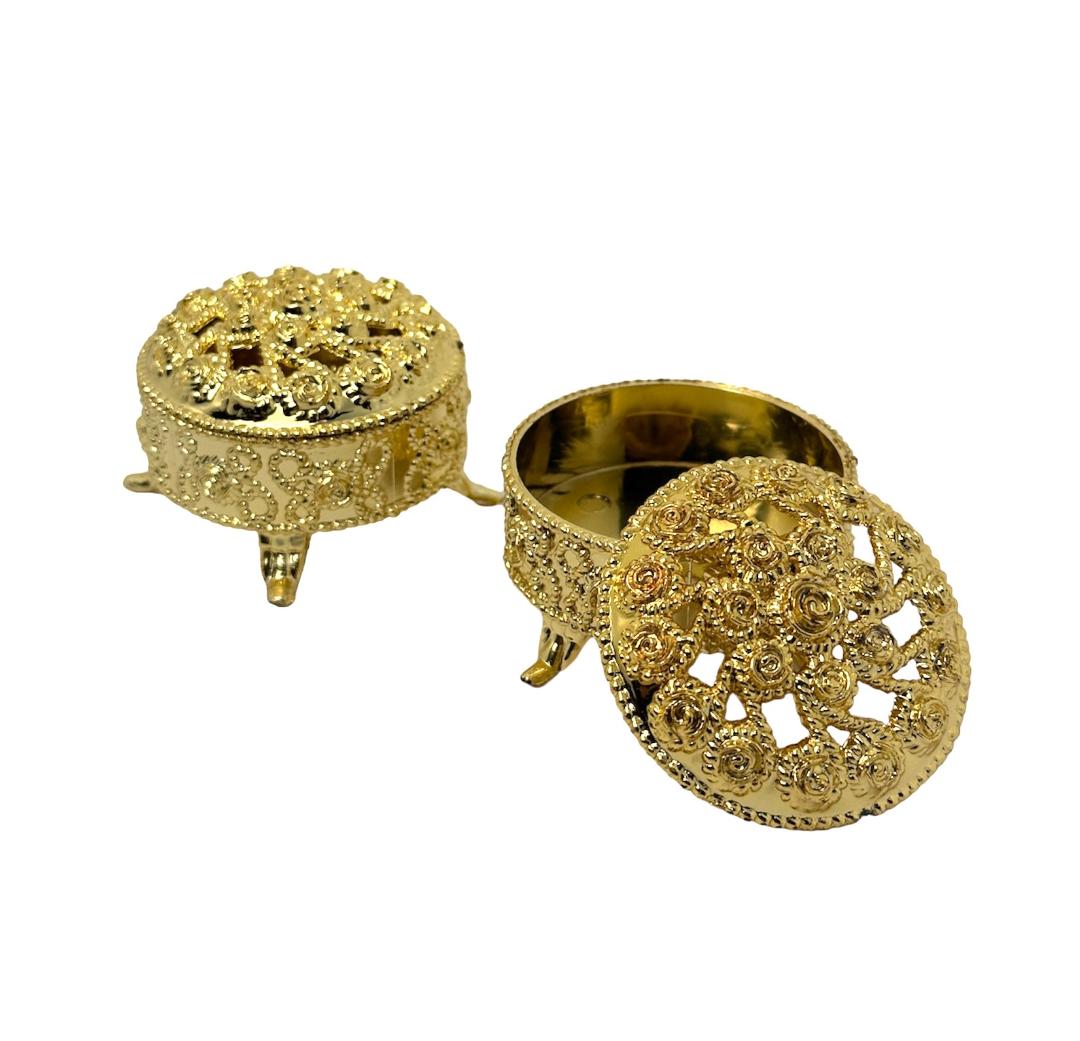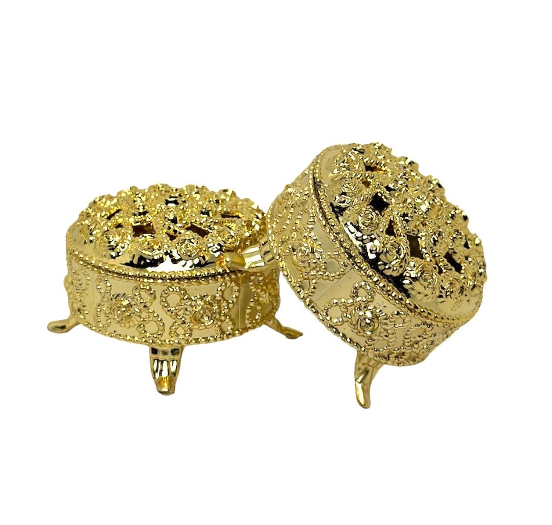 These gold trinket boxes in our collection are simply breathtaking with their beauty. They are ideal for storing small treats such as almonds, candy and so forth. Embellished with sparkling designs from top to bottom, they make for great keepsakes.