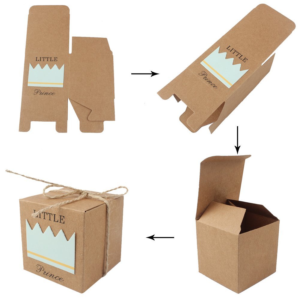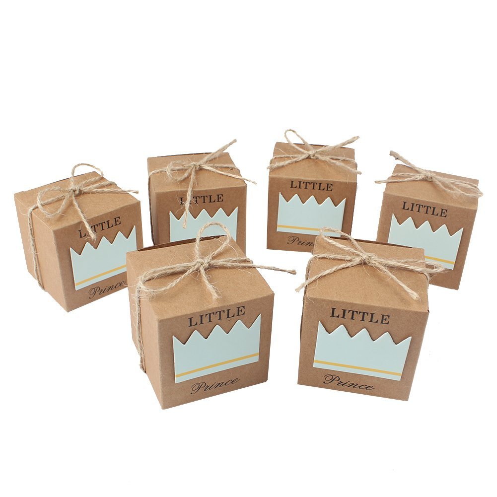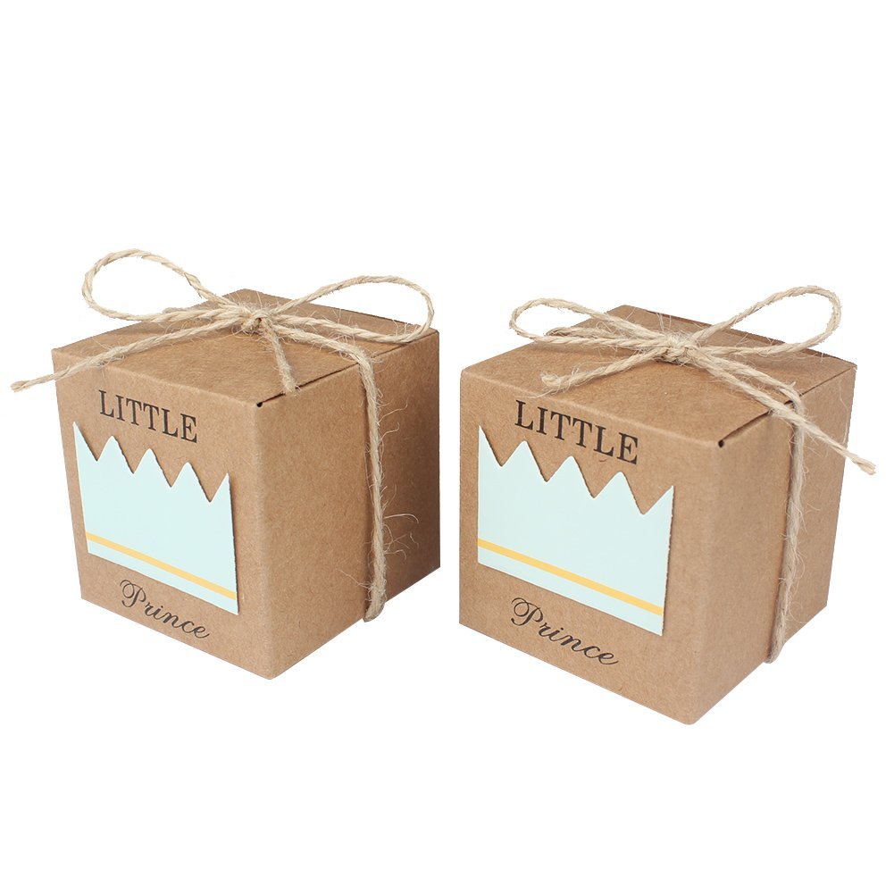 Small and very cute, decorated with a pink crown, a herd of adorable baby favor themed baby shower decorations have arrived. The perfect birthday party ideas for toddlers await with these pink born to be wild party favor boxes! All of the boxes are flat packed, it is easy for you to assemble them by yourself. 50 favor boxes and 50 twine bow, little prince printed on boxes to create your favors