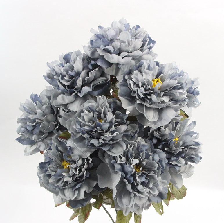 25 Inch Artificial Peony Silk Flower Bush 9 Heads Gray with Williamsburm Blue