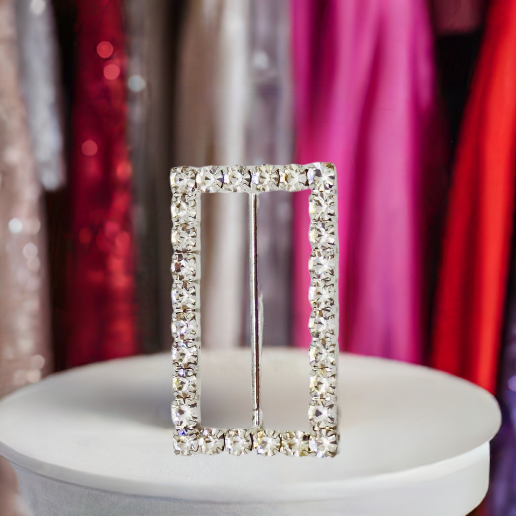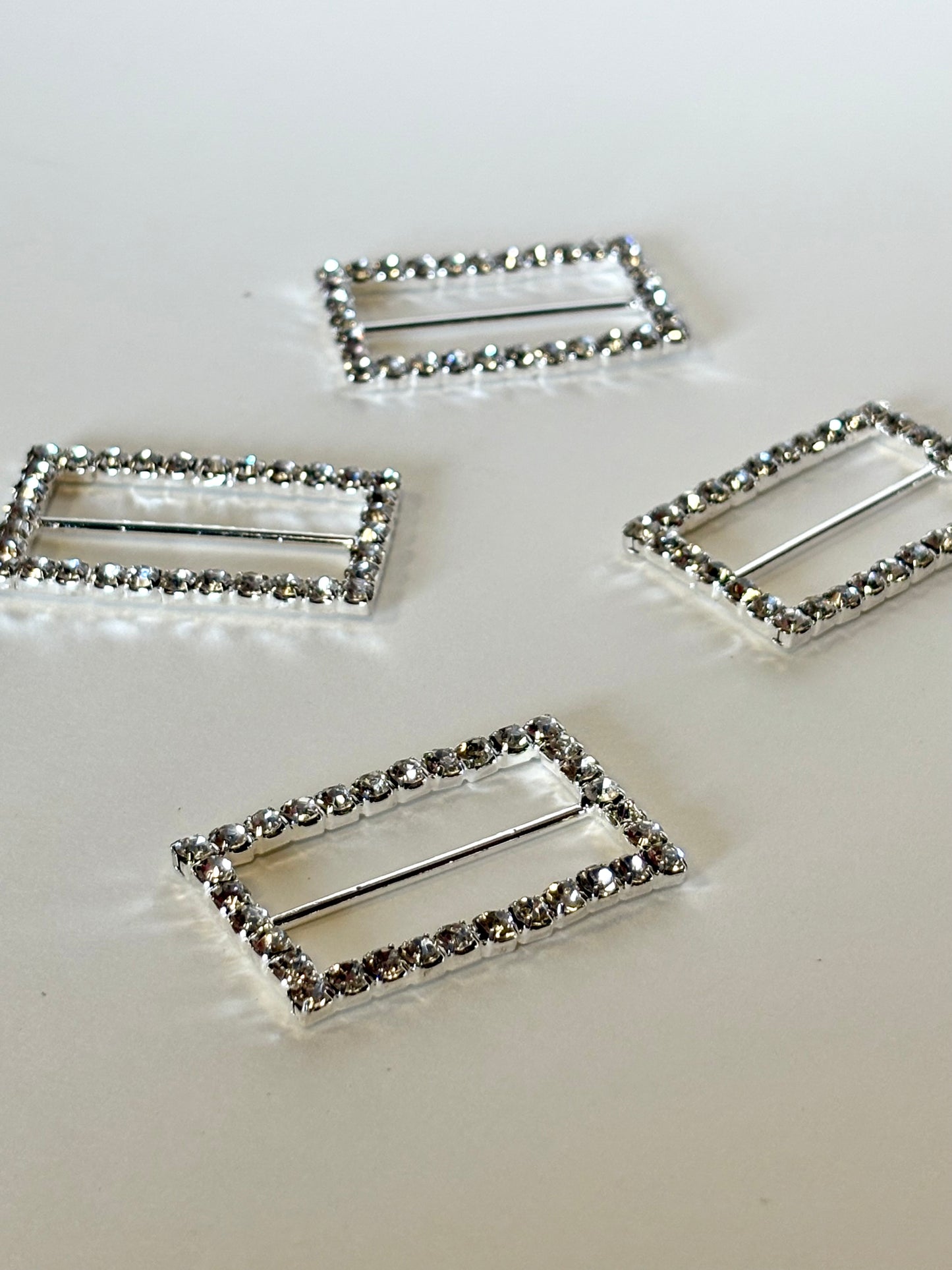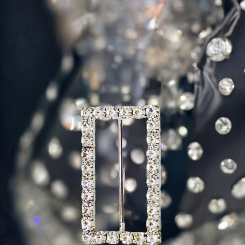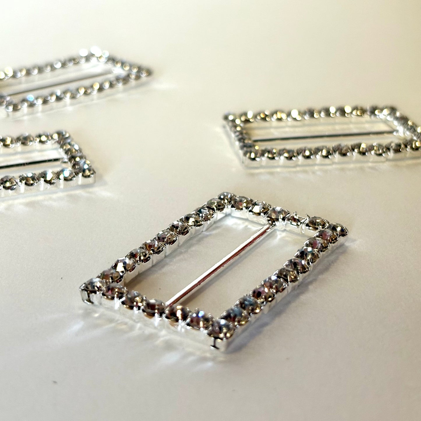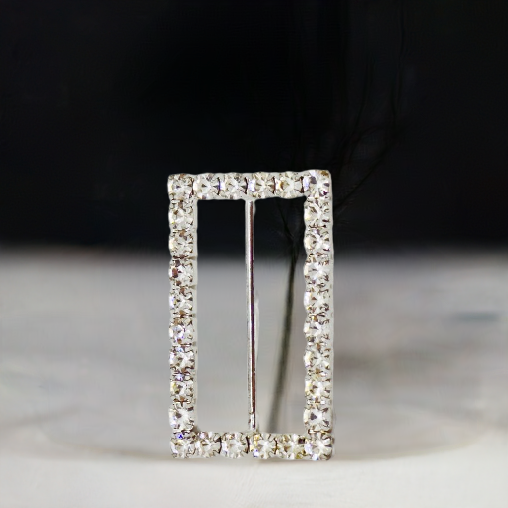 2"x 1.25" Rectangular shape rhinestone buckles can be used on invitation card, favor box, ribbons and so on. Good for any occasion.