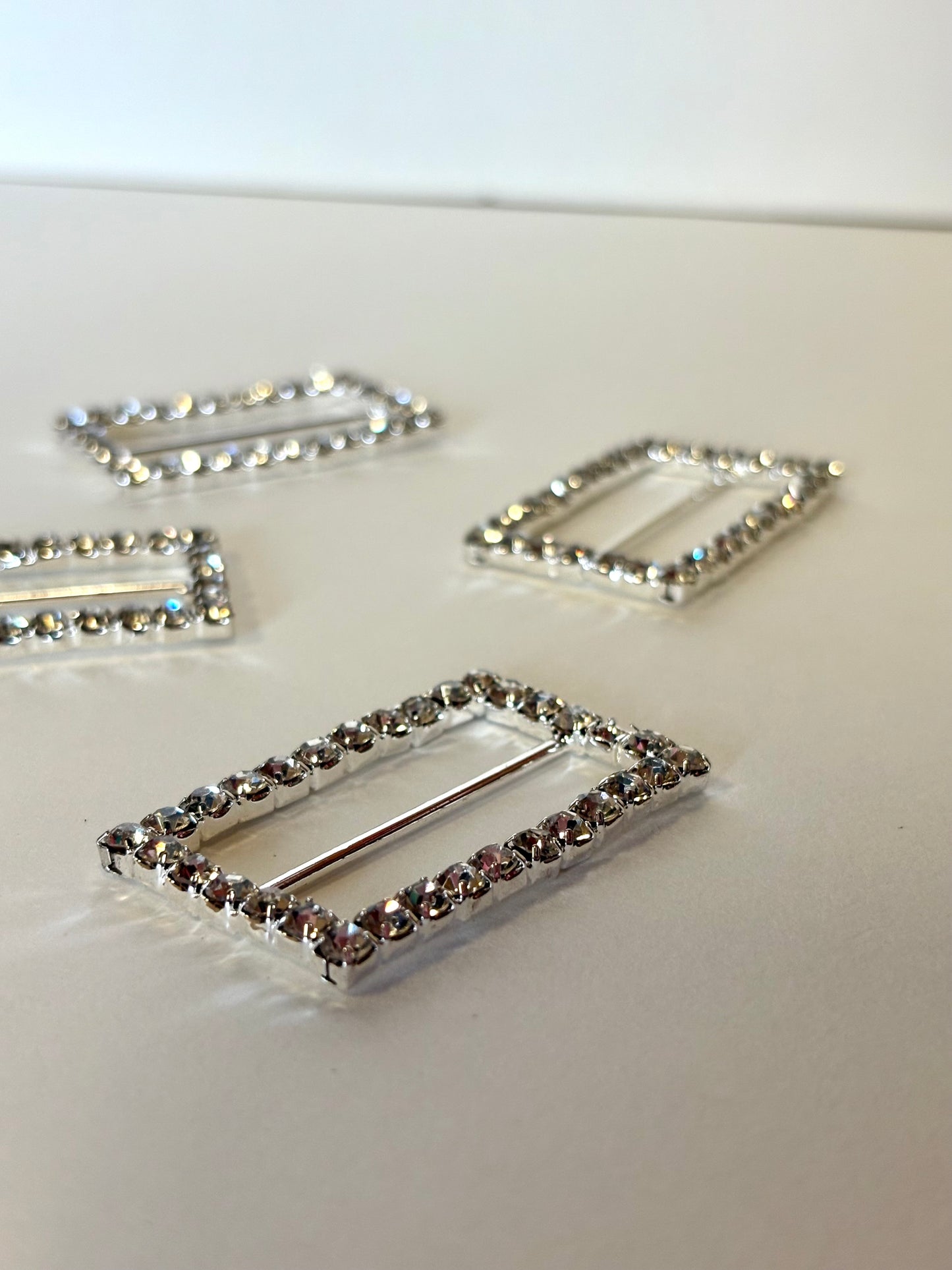 2"x 1.25" Rectangular Shape Rhinestone Buckles (4 Pieces)
