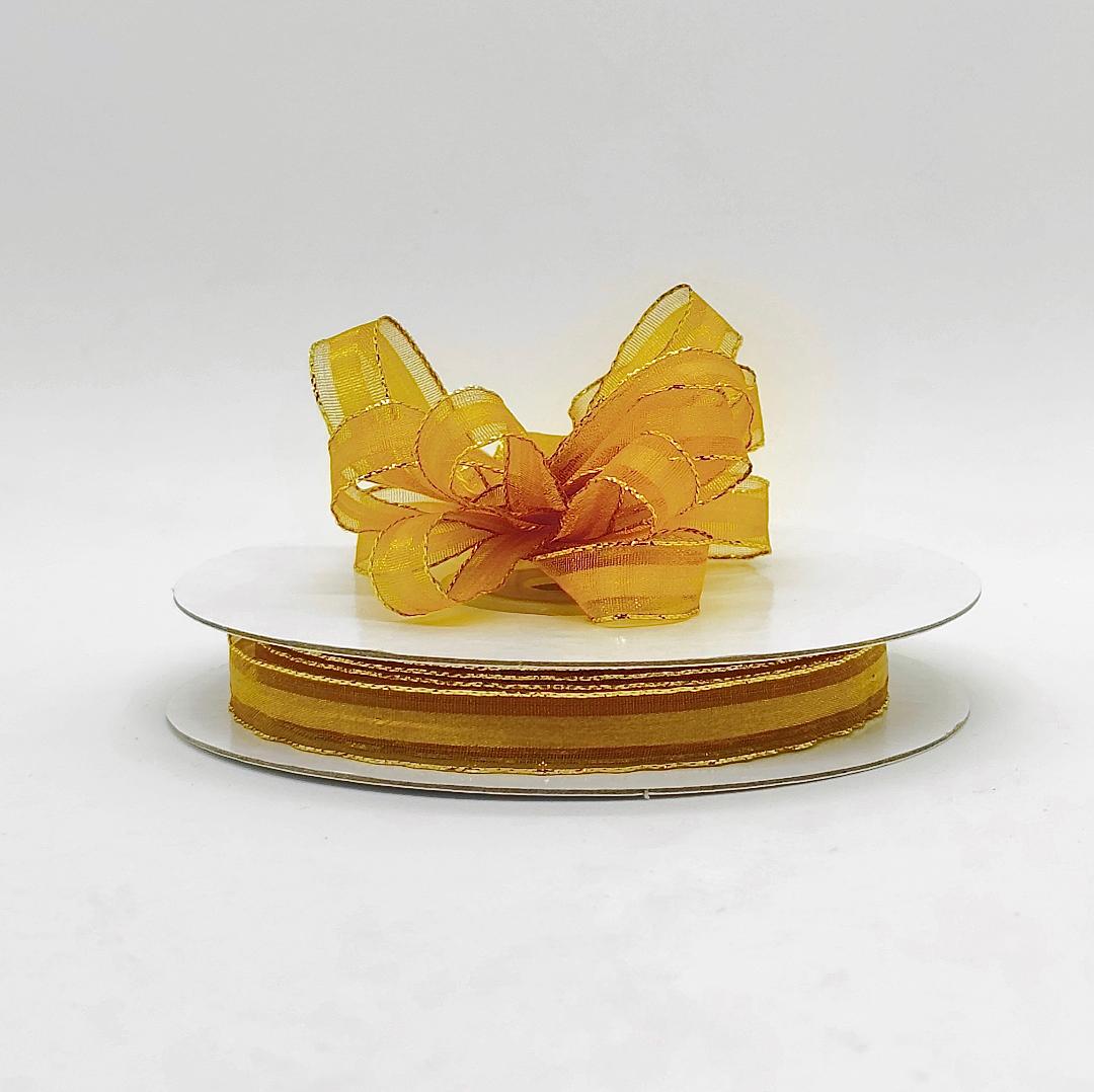 - This beautiful Gold w/Gold edge ribbon adds lively style to your crafts with a perfect combination of vivid color and texture, will make gift wrapping and decorations a breeze.