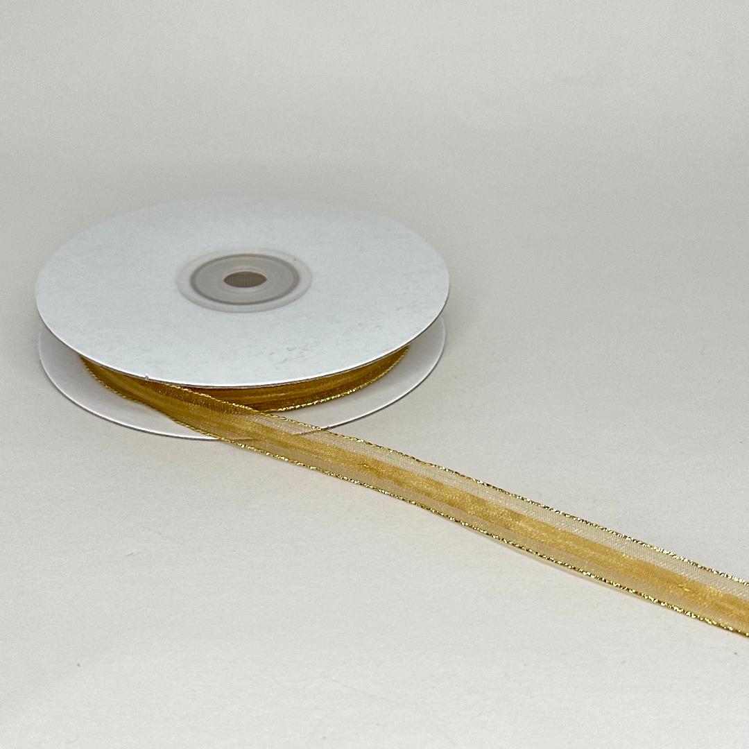 3/8" Gold with Gold Edge Organza Thin Pull Bow String Ribbon (25 Yard) Gift Wrapping Favor Decorating