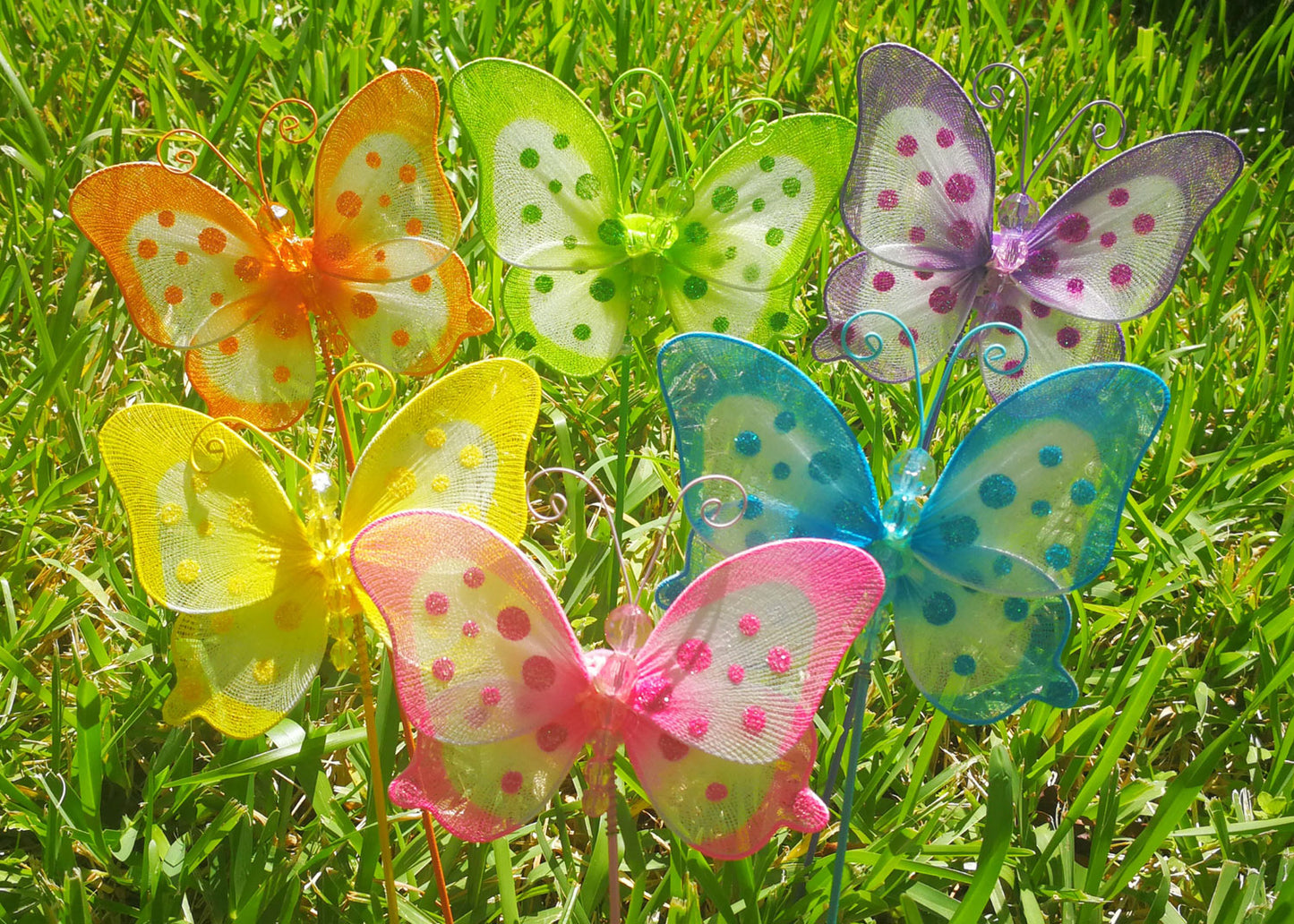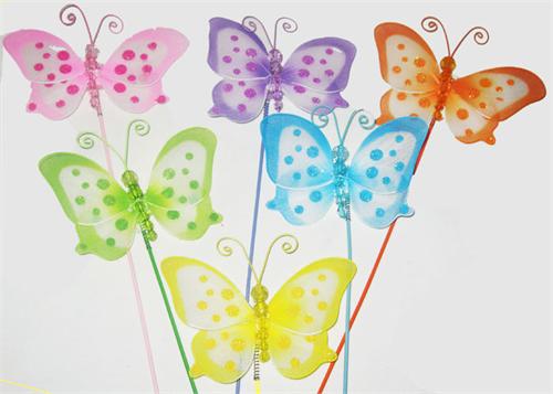 4'' Polka Dots Nylon Butterfly Decoration With Stick (24 assorted pieces)