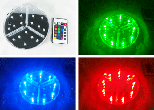 Bring an electrifying illumination to your event by using "L.E.D Light Base" with remote control. the battery -operated light base with multi-color-functionality can be used to illuminate any event or centerpieces to look chic and fabulous. you can use it to make stunning centerpieces