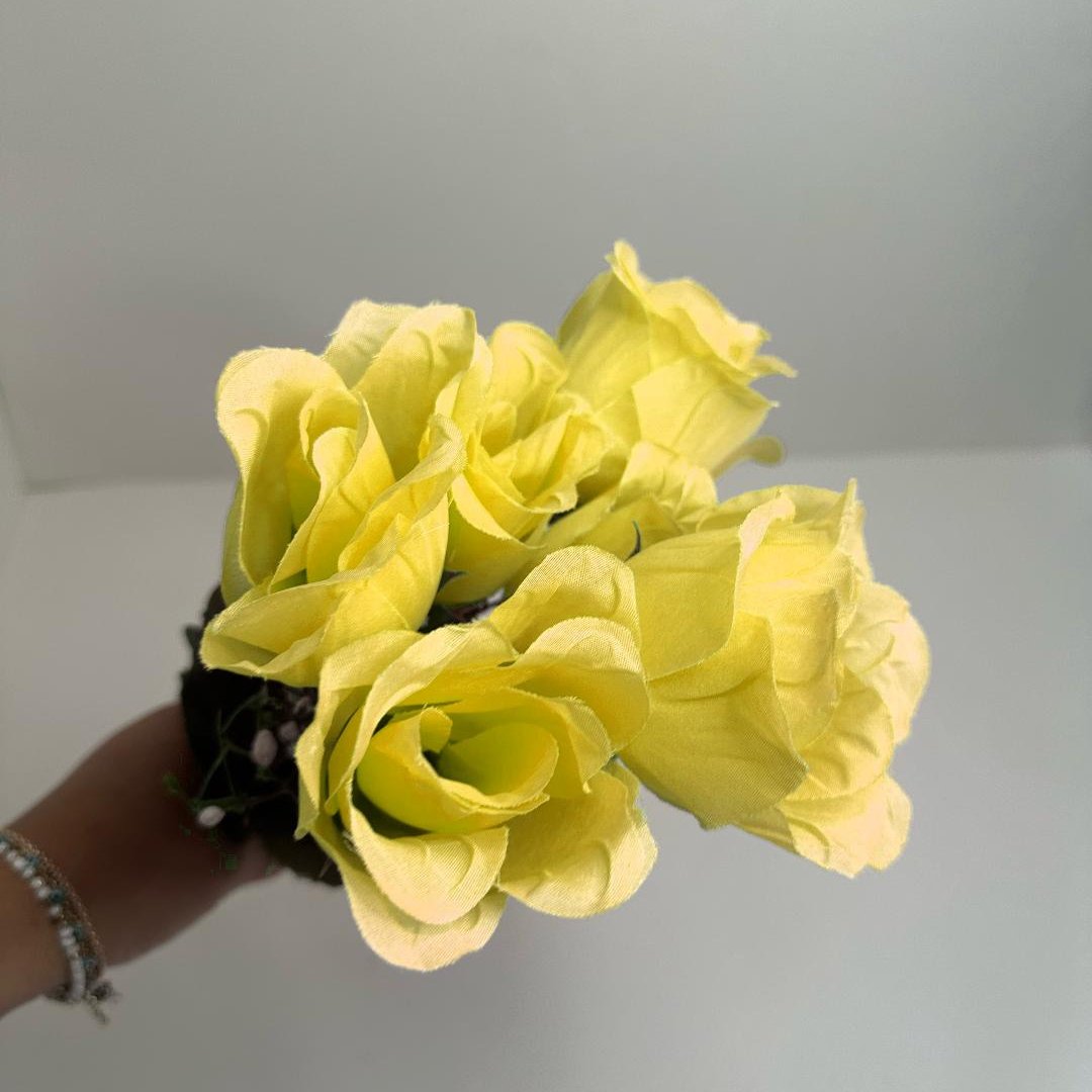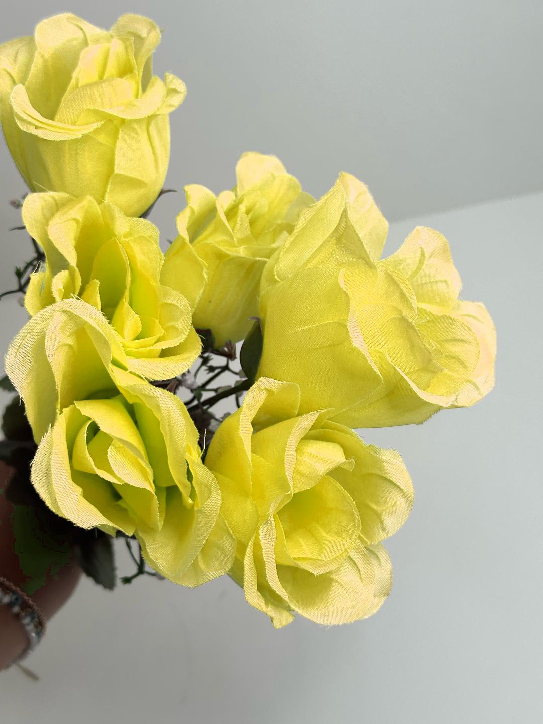 7 Heads Yellow Artificial Closed Rose Bush (12 Bushes)