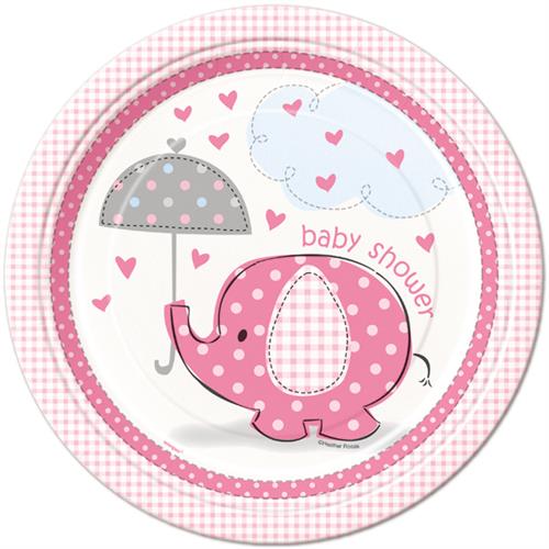 9" Baby Shower Umbrella Elephant Paper Plates Pink (8 Pieces)