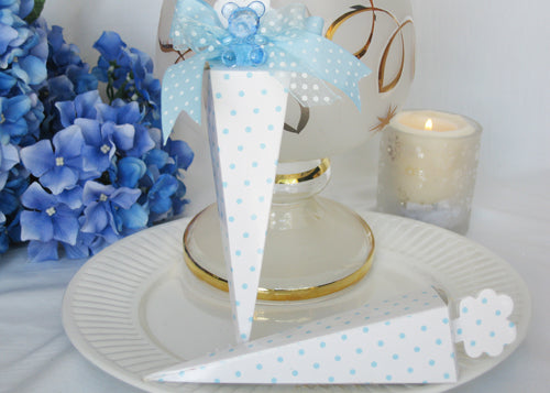 Cone Shaped Light Blue Polka Dots Favor Boxes (12 pieces)