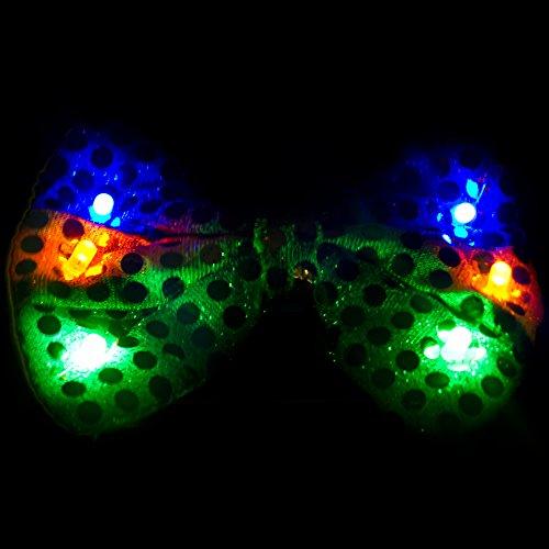 Rock your next party with our snazzy green sequin LED bow tie! Perfect for Mardi Gras events and parties, our sequin bow tie features 6 LED's: two green, two yellow, and two blue, with three different speed of blinking. 100% brand new and high-quality Bow Tie.