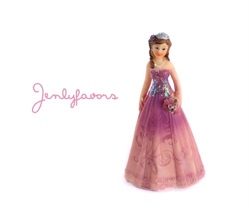 Mis Quince Anos and Sweet 16 4.5 inches Purple Cake Topper Doll. A quince is one of the most important days in a young girls life. Dazzle your daughter as well as your guests with our Victorian quince anos dolls. These lovely dolls are features posing in her sparkling dress holding a rose bouquet