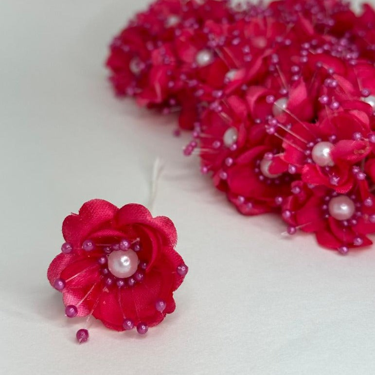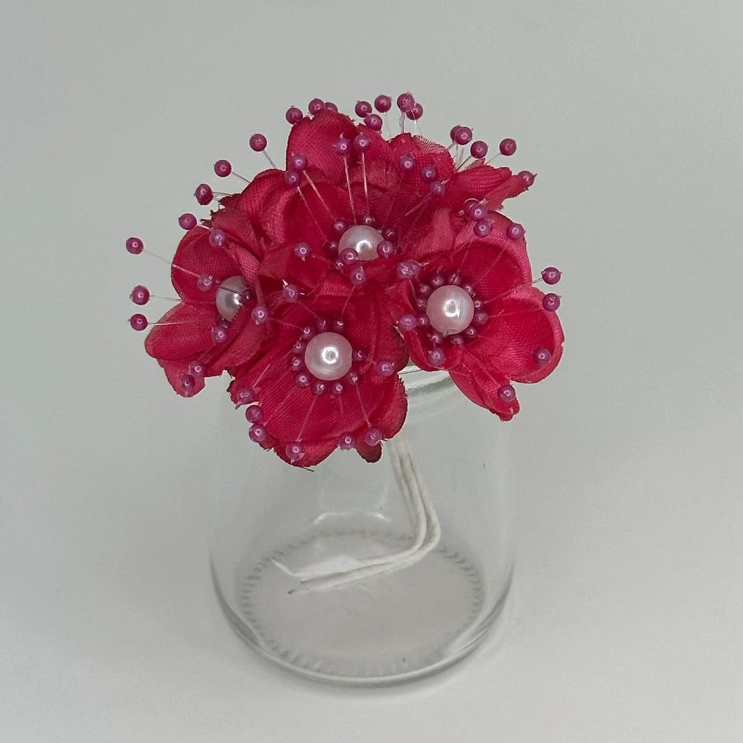 Organza and Satin Flower with Pearl Spray Fuchsia (72 Flowers)