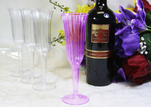 Our clear plastic champagne flute enhances the tables for any event. Being pleasant to look at, they are sure to give a classic look to your occasion. With no need to worry about breaking like real glasses, they allow you to further enjoy yourself while still maintaining their attractiveness.