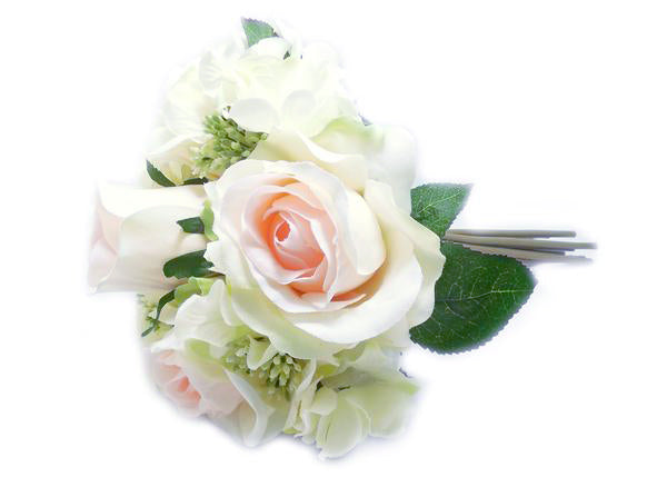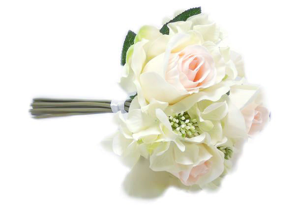 Rose & Hydrangea Silk Flower Wedding Bouquet Cream Blush