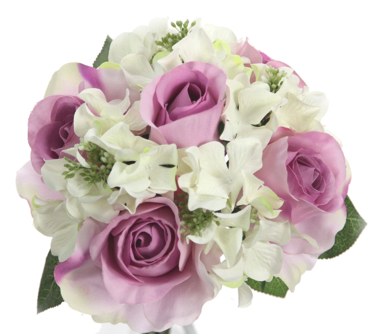 Rose & Hydrangea Silk Flower Wedding Bouquet Cream Lavender