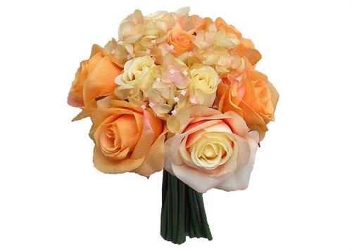 Rose & Hydrangea Silk Flower Wedding Bouquet Orange