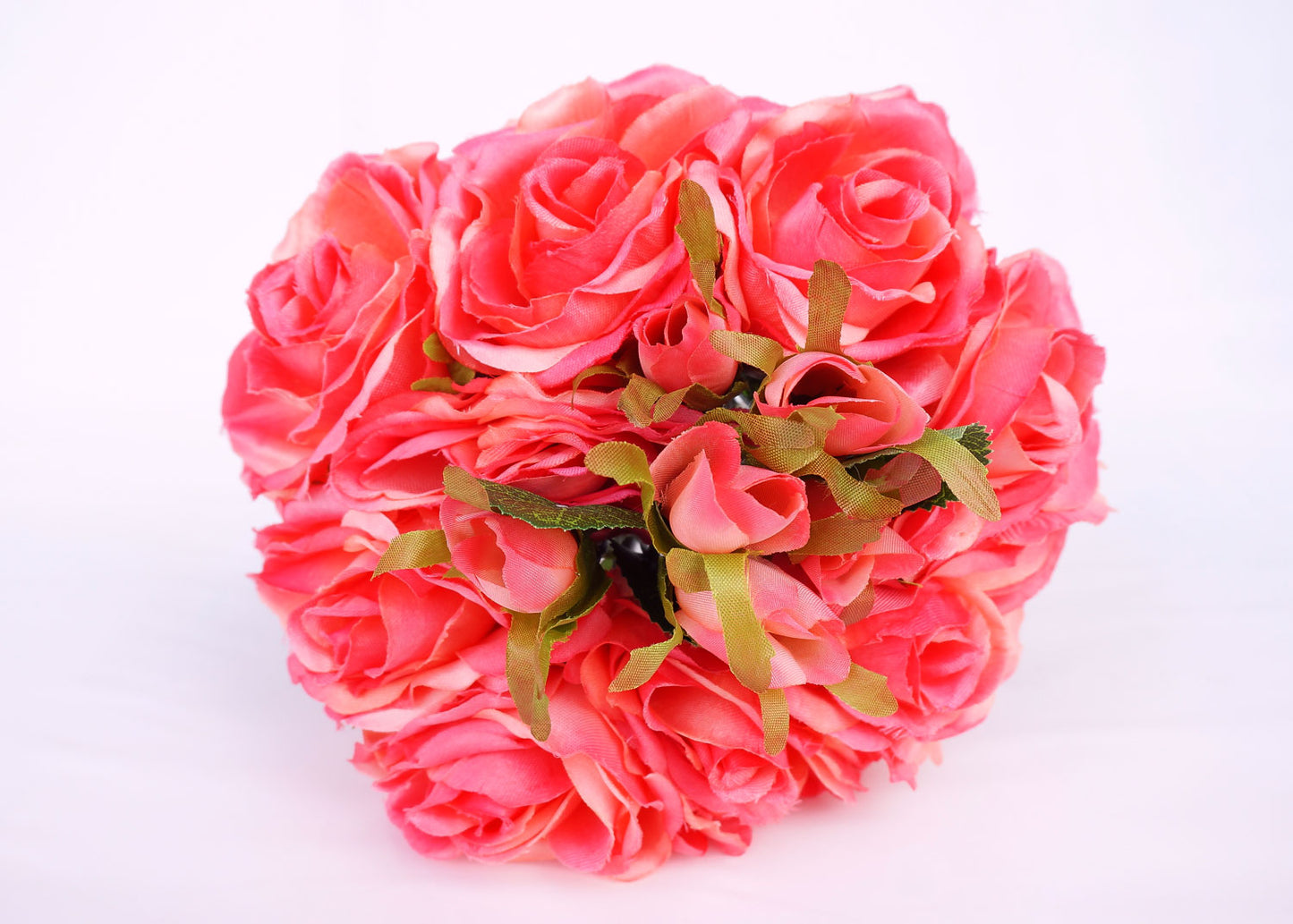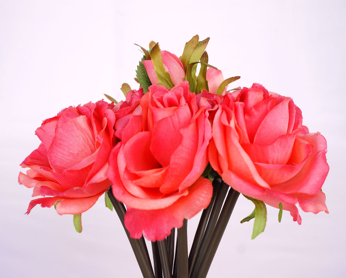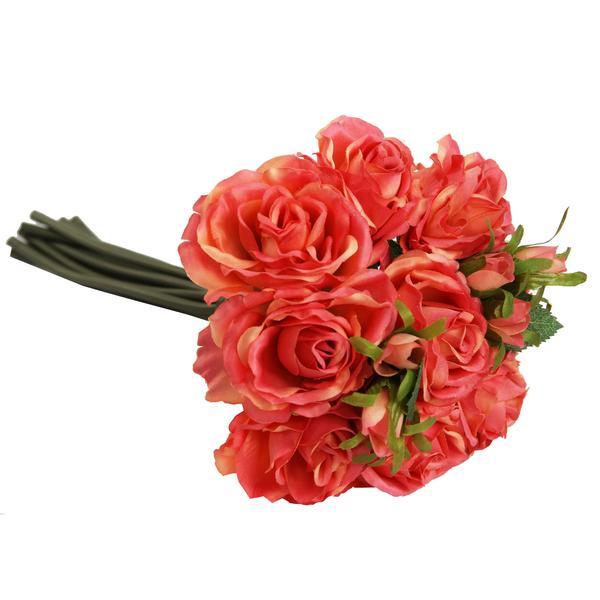 Rose Artificial Silk Flower Bouquet Dark Coral