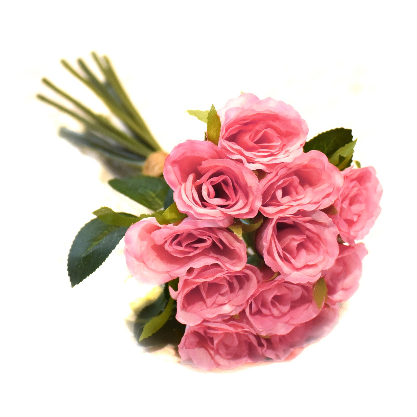 Rose Silk Flower Wedding Bridal Bouquet Rose Pink