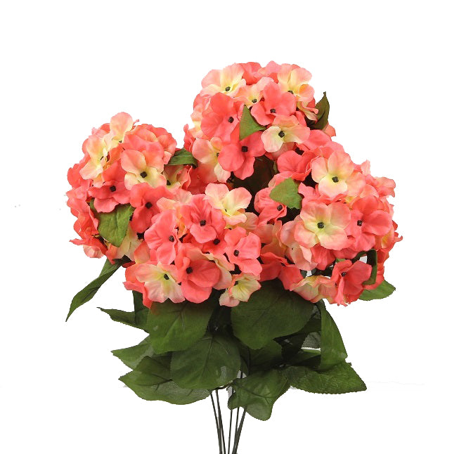 22 Inch X-Large Satin Artificial Hydrangea Silk Flower Bush 7 Heads 2-Tone Coral