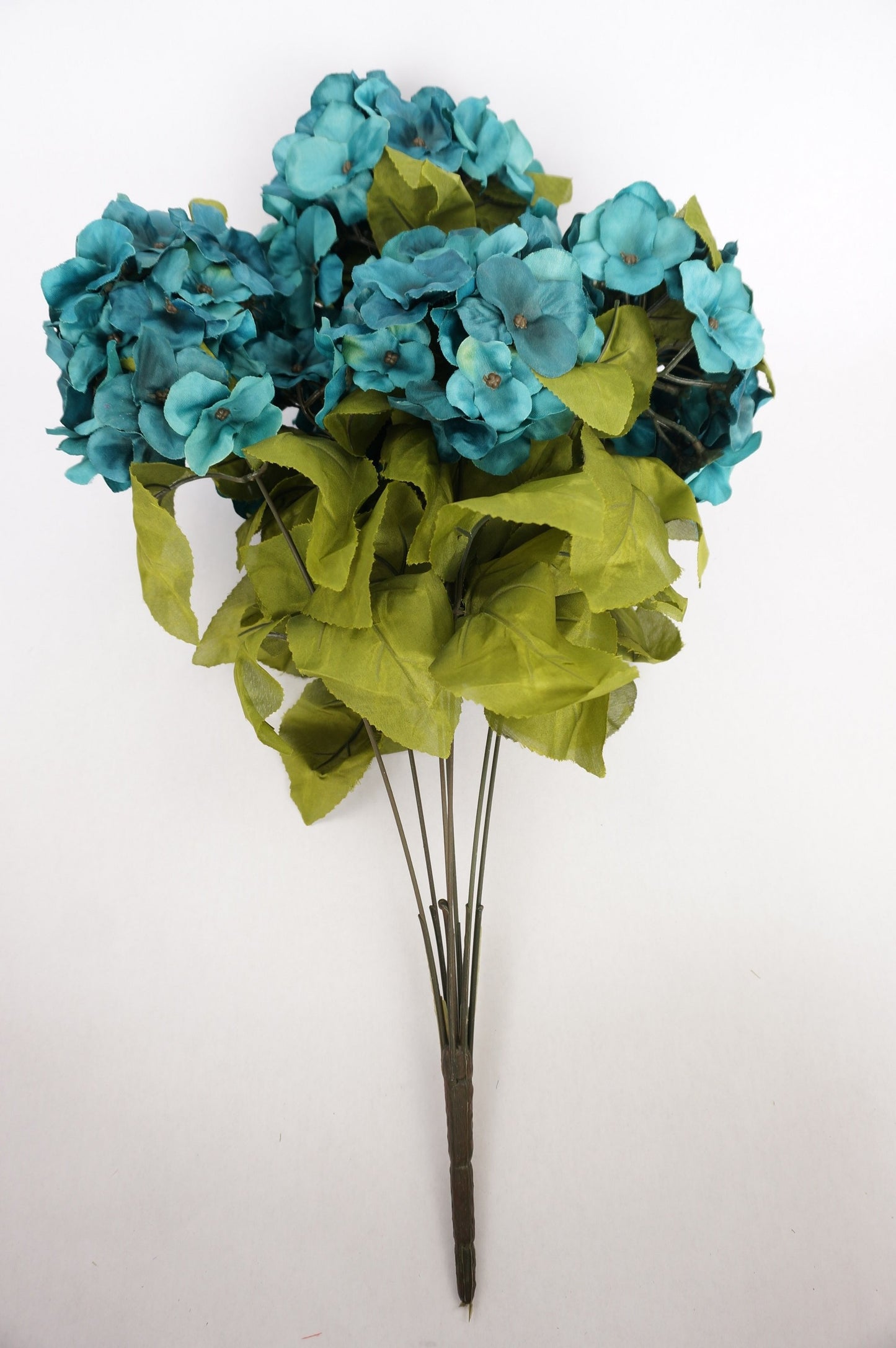 22 Inch X-Large Satin Artificial Hydrangea Silk Flower Bush 7 Heads Emerald