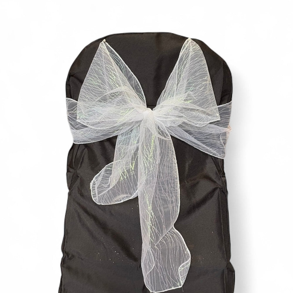 9 x 10 Ft Glitter Organza Chair Bows/Sashes White  (12 pieces)
