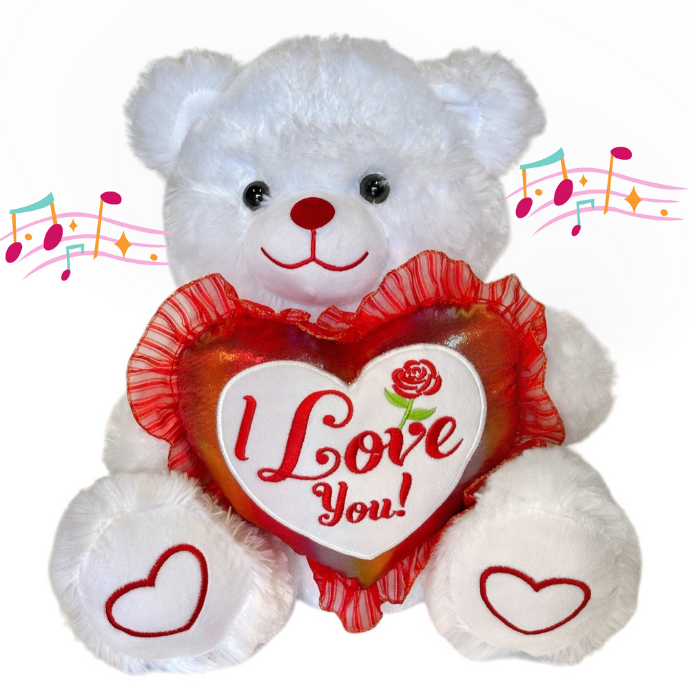 15" Musical Valentine Bear White with I Love You Heart & Light up cheek