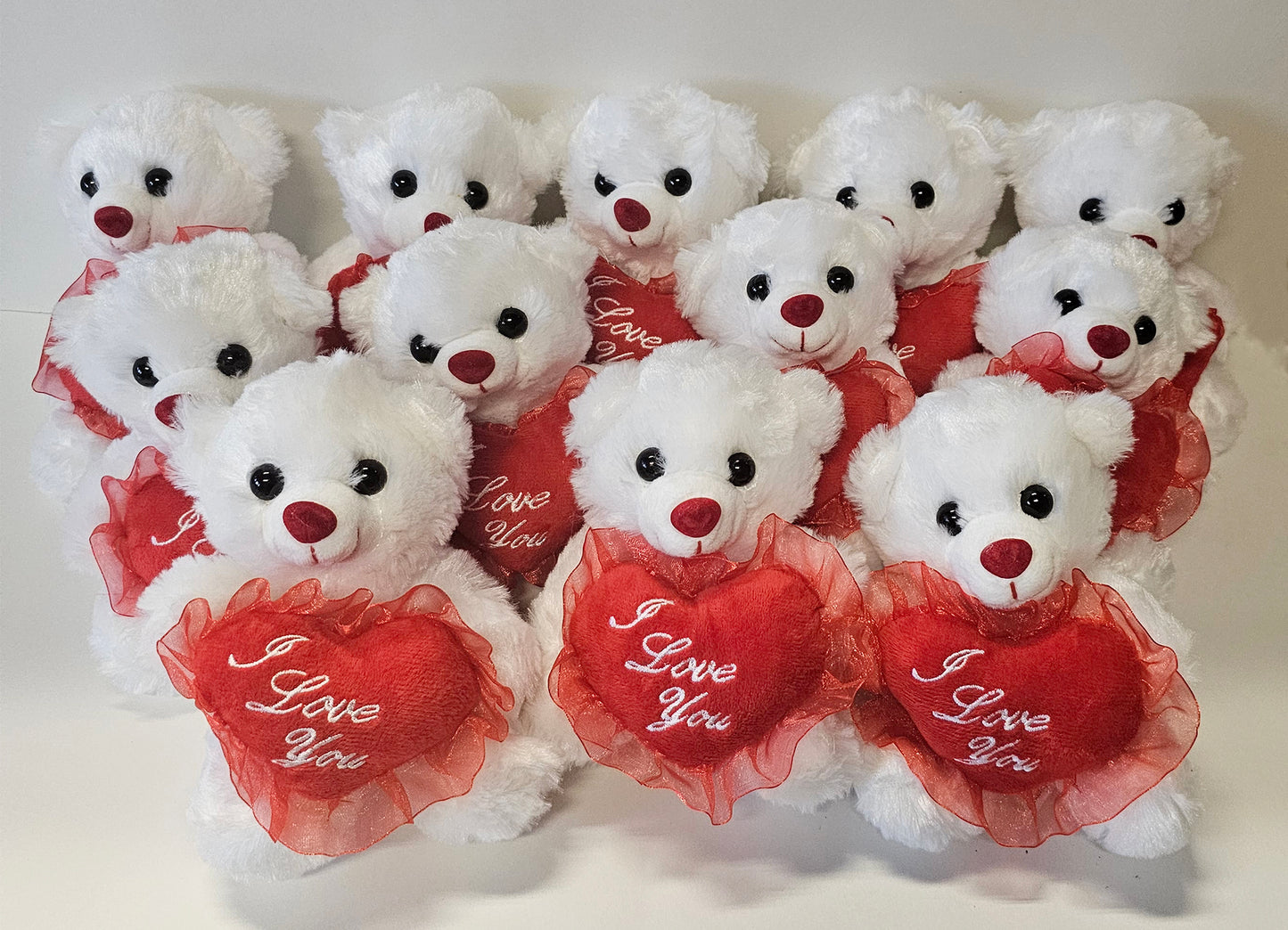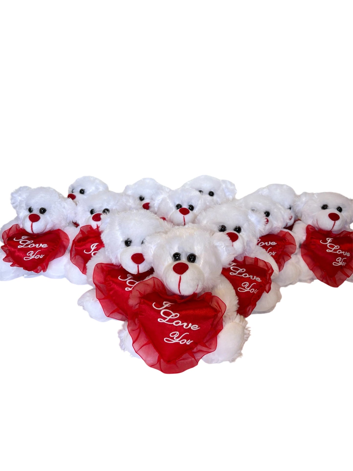 12 PCS 6" White Teddy Bear with "I Love You" Heart Valentine Gift
