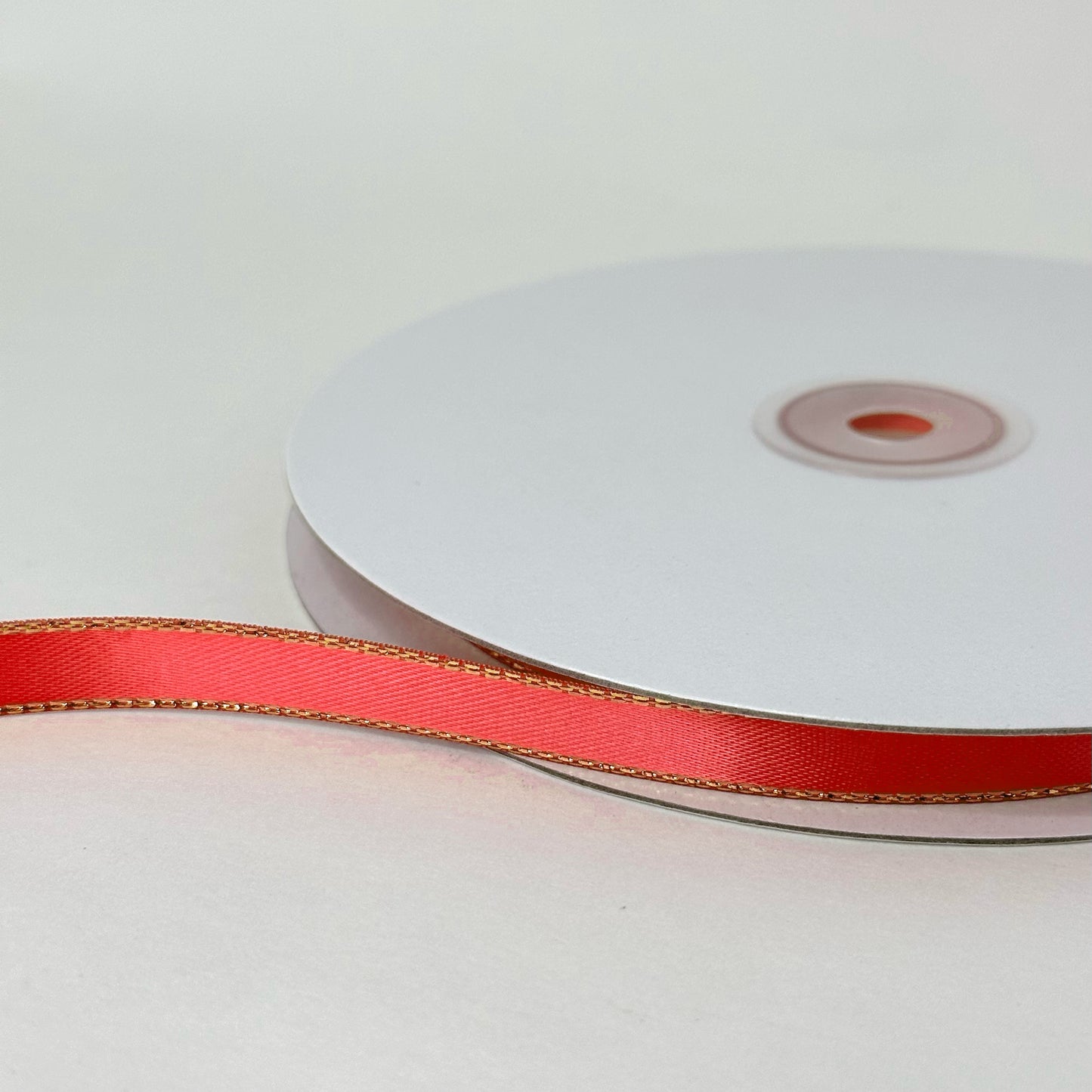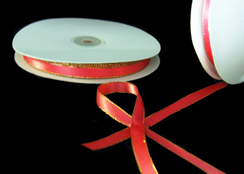 3/8" Double Face Satin Ribbon with Gold edge Coral 50 Yards