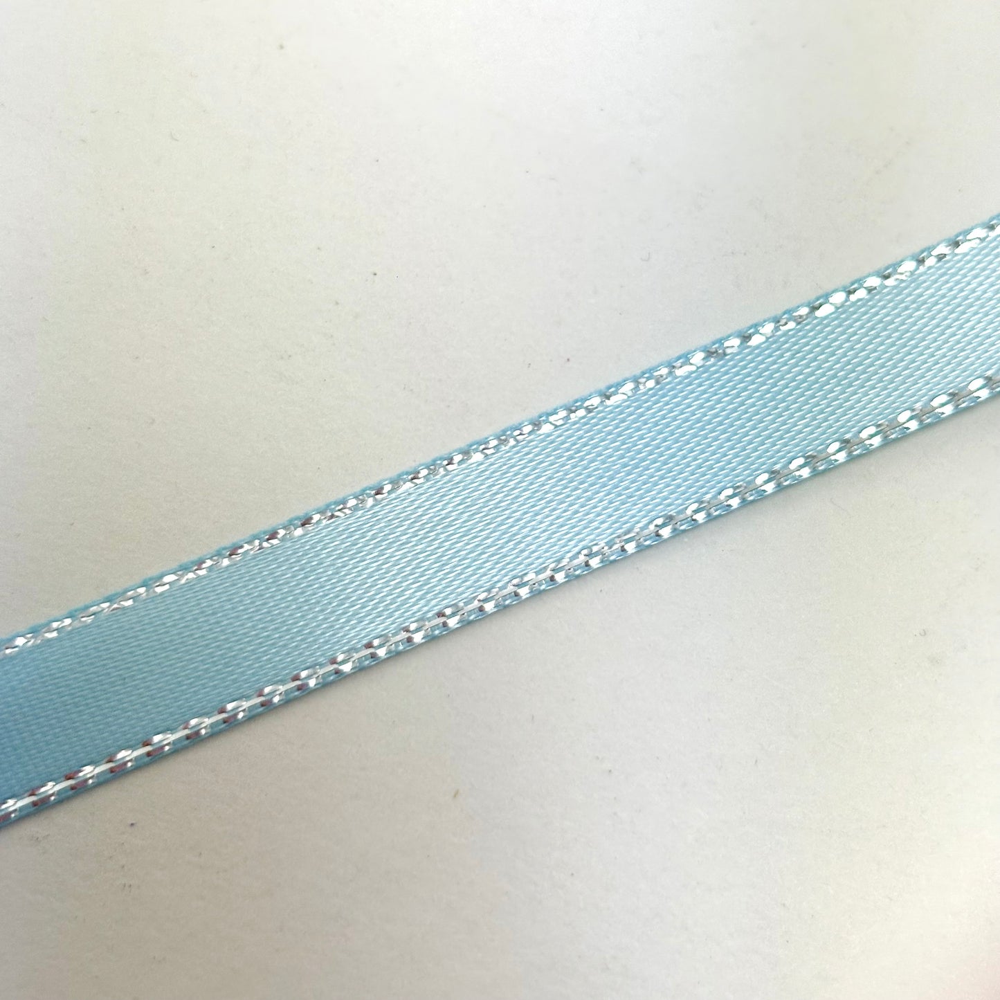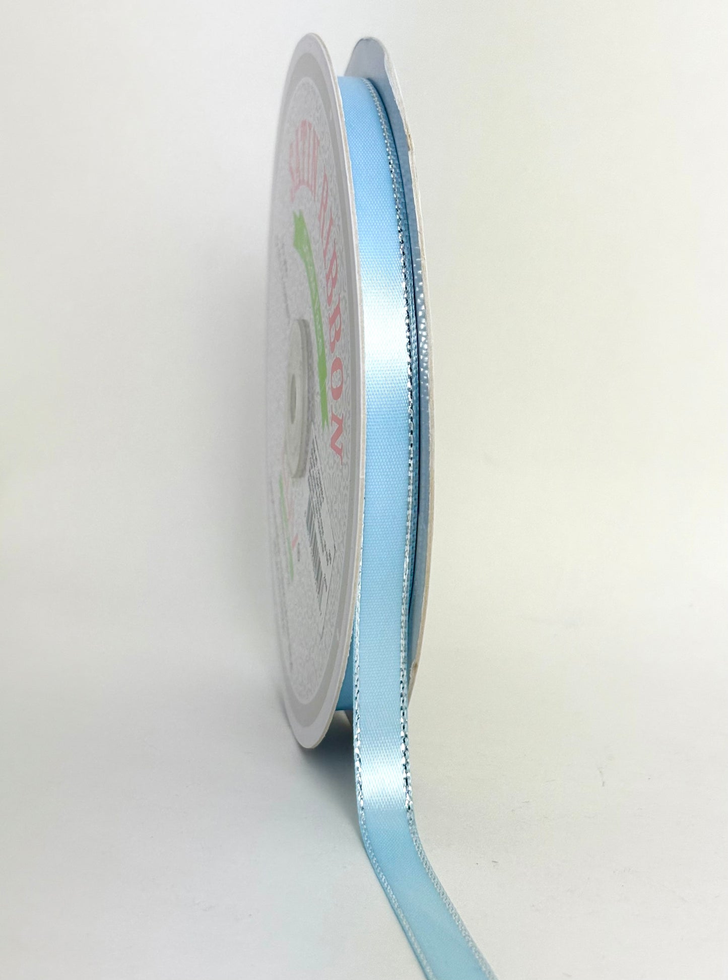 3/8" Double Face Satin Ribbon with Silver Edge Light Blue 50 Yards