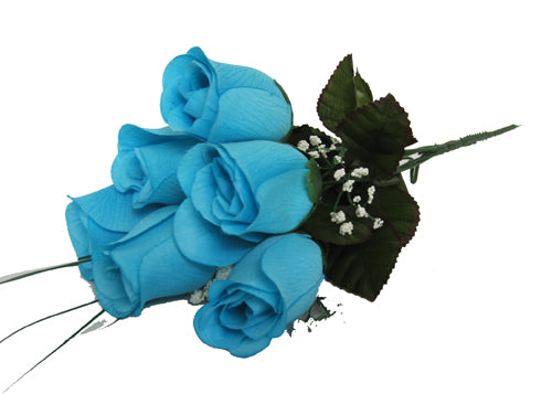 7 Heads Turquoise Artificial Closed Rose Bush (12 Bushes)