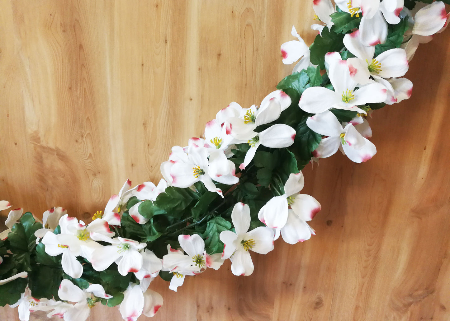 Our artificial Dogwood Garland is beautiful. It is perfect for your decoration for weddings and on any occasion. And it is a good idea to decorate your home or office, make you feel comfortable and work quickly.