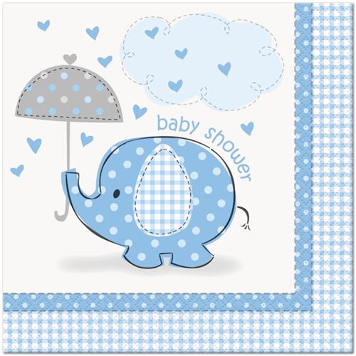Umbrella Elephant Lunch Napkins. Roll your Elephant Baby Blue Lunch Paper Napkins in a simple roll, and tie them with curling ribbon for a pretty place setting. These Napkins are perfect for serving snacks or wiping up spills, and Disposable tableware makes after party cleanup easy