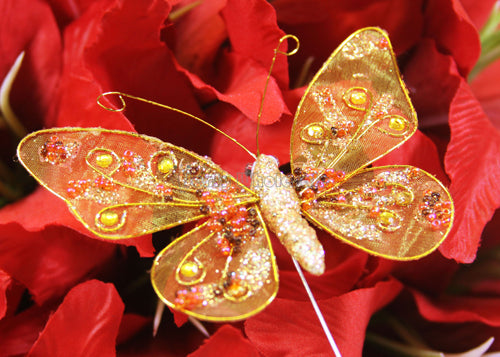 Glitter Organza Decorative Butterflies Orange(12 pieces)