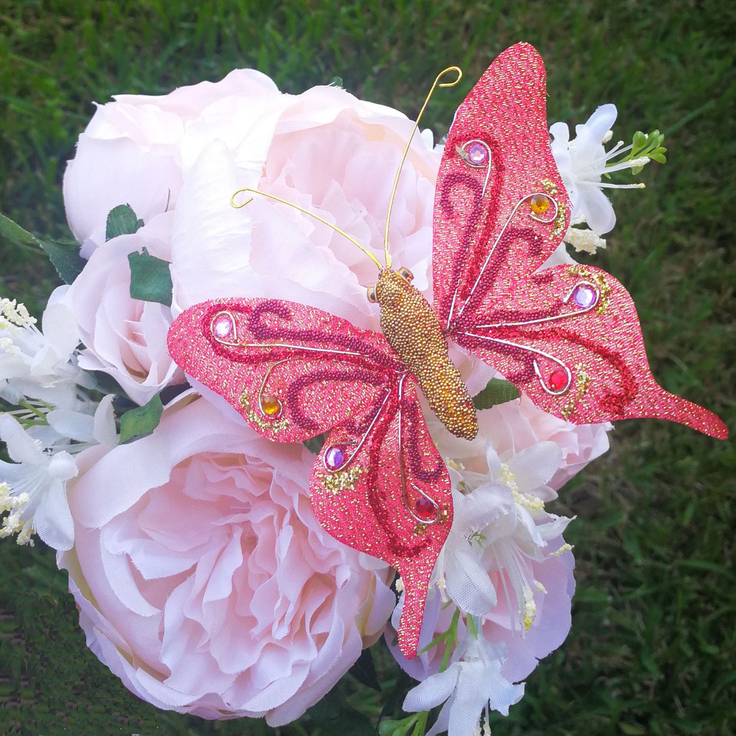 Regular price $6.99These handmade glittering artificial Butterflies are lovely decorative tools to use in any event. For example, you can use it for indoor, outdoor, party, home or office, wedding centerpieces, bouquet accent accessories, headpieces, Christmas ornament and so on. Rhinestones, glitter, beads and detailed designs cover the wings of our butterflies, which make them a wonderful sight. Equipped with a clip, they are extremely easy to place making decorating hassle free.