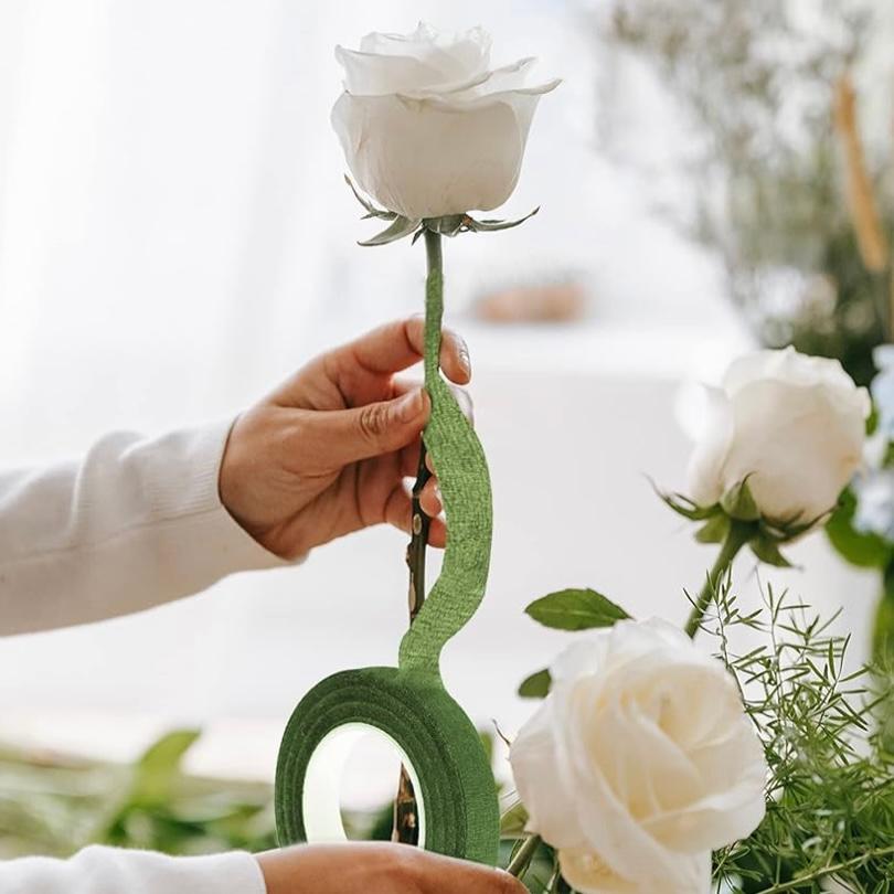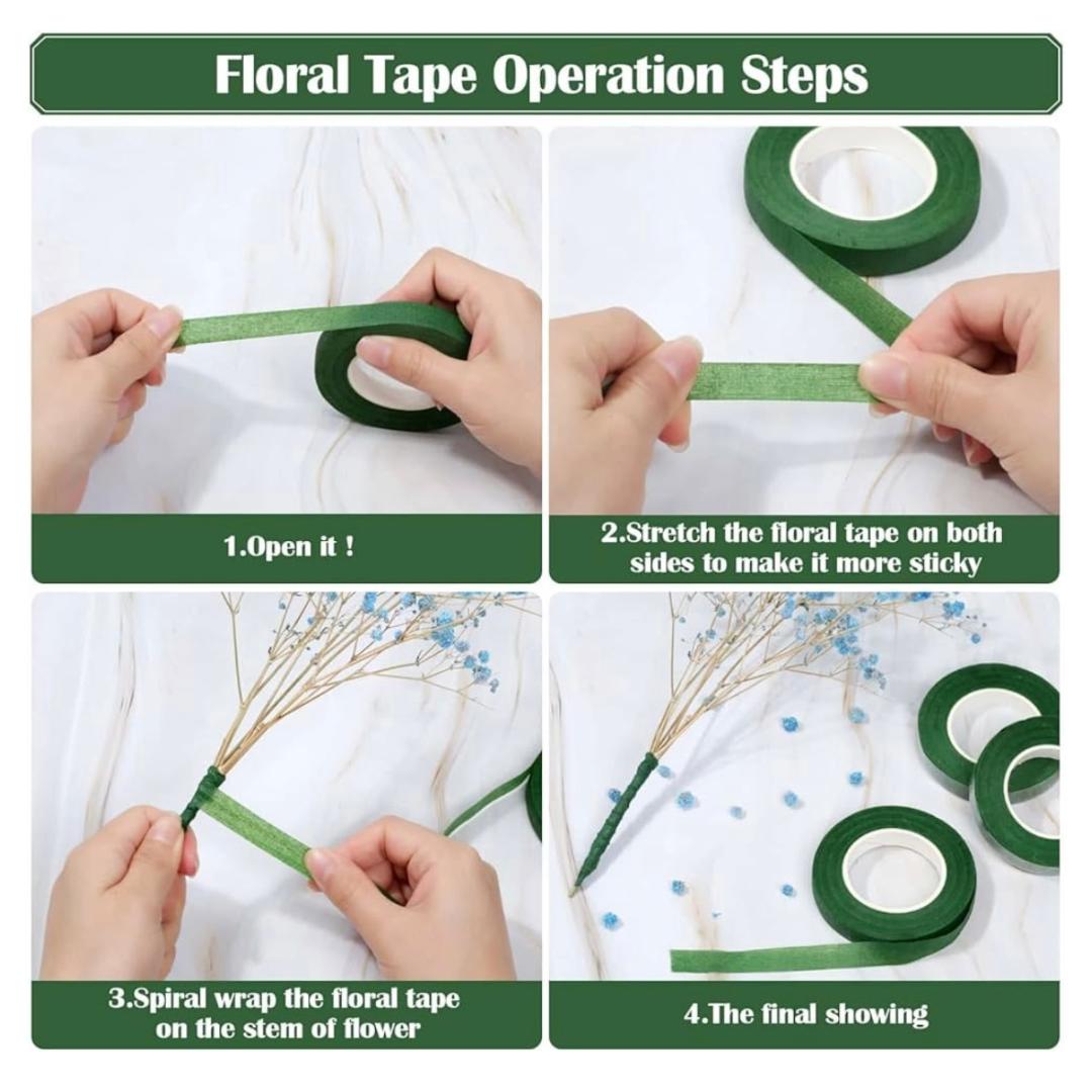Flora tape is the original self-sealing stem wrap for finishing corsage and wedding bouquet stems, floral novelties, and silk or dried flowers and can provide a neutral or colorful finishing touch to creative and original floral work. 1/2" x 30 yards.