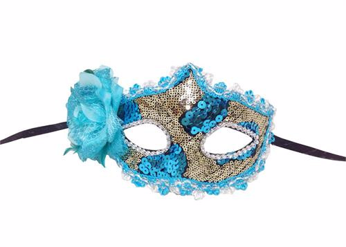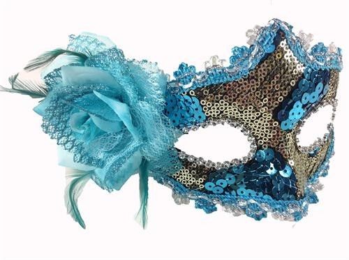 Handmade Blue Venetian Mask with a Rose