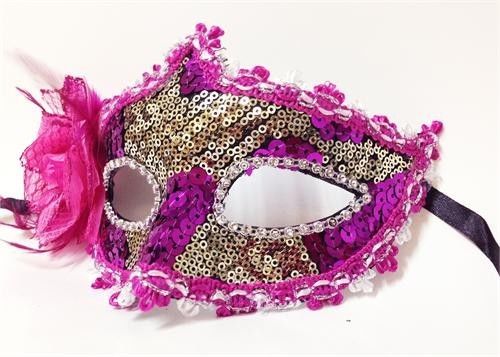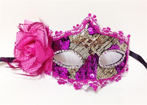 Handmade Fuschia Venetian Mask with a Rose