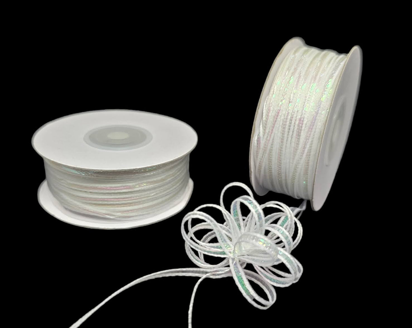 Iridescent White 4MM Pull Bow Ribbon 100 Yard
