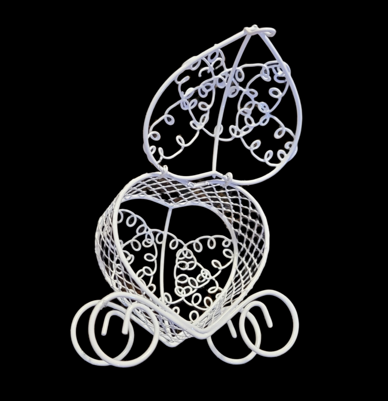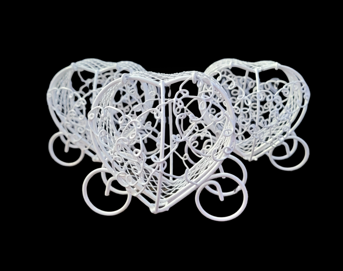 Handmade creative designed white metal heart shaped carriage favor made of painted metal, suitable for a party favor or as a favor box for your wedding, anniversary or any event.
