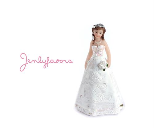 Mis Quince Anos and Sweet 16 4.5 inches White Cake Topper Doll. A quince is one of the most important days in a young girls life. Dazzle your daughter as well as your guests with our Victorian quince anos dolls. These lovely dolls are features posing in her sparkling dress holding a rose bouquet
