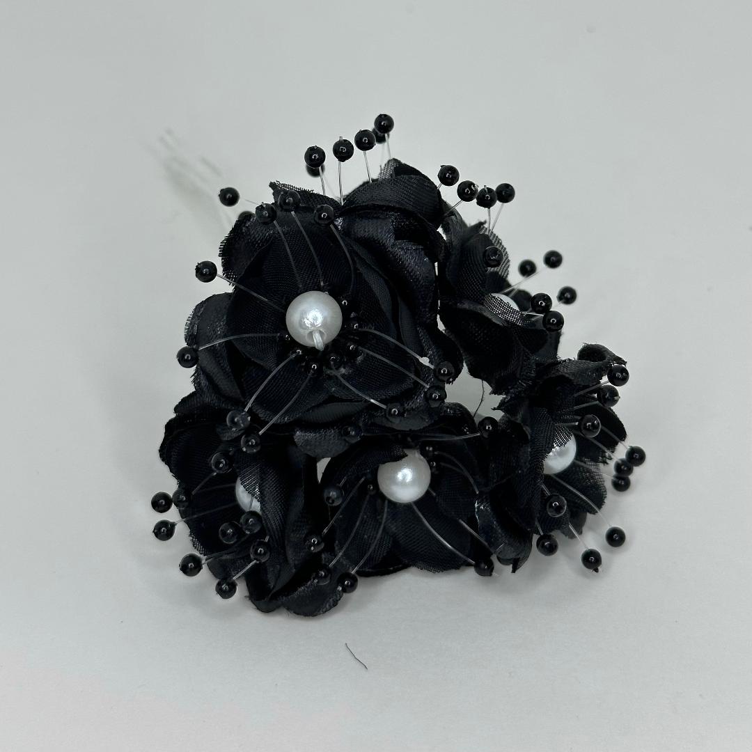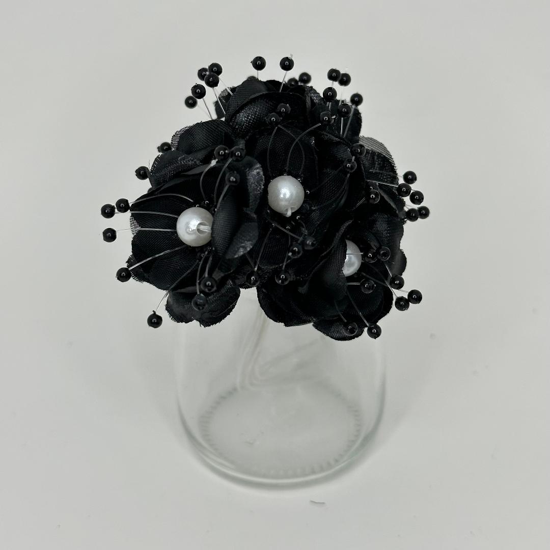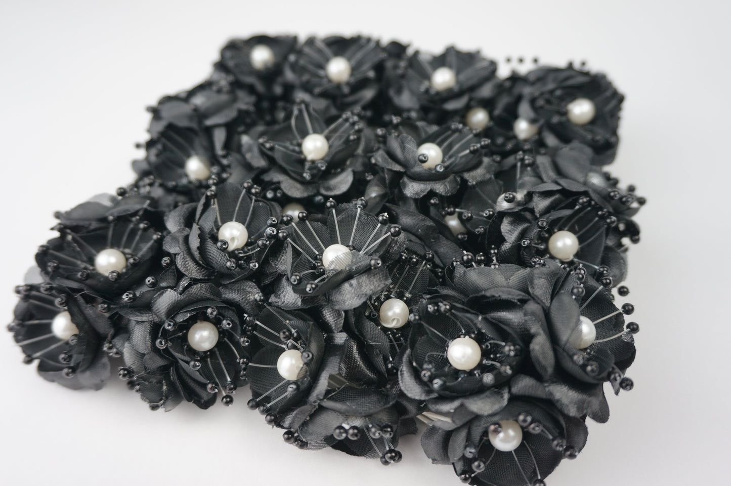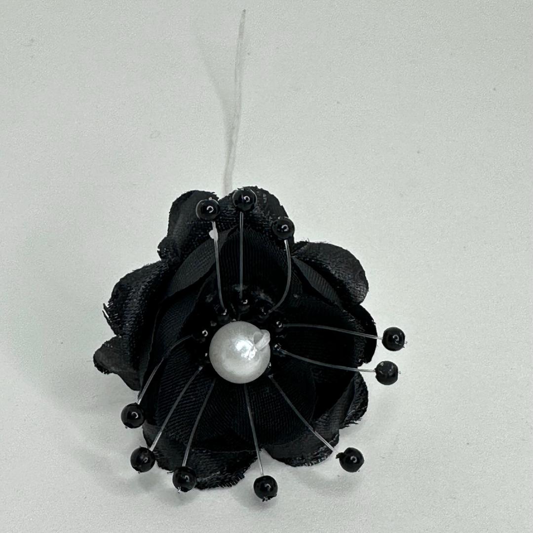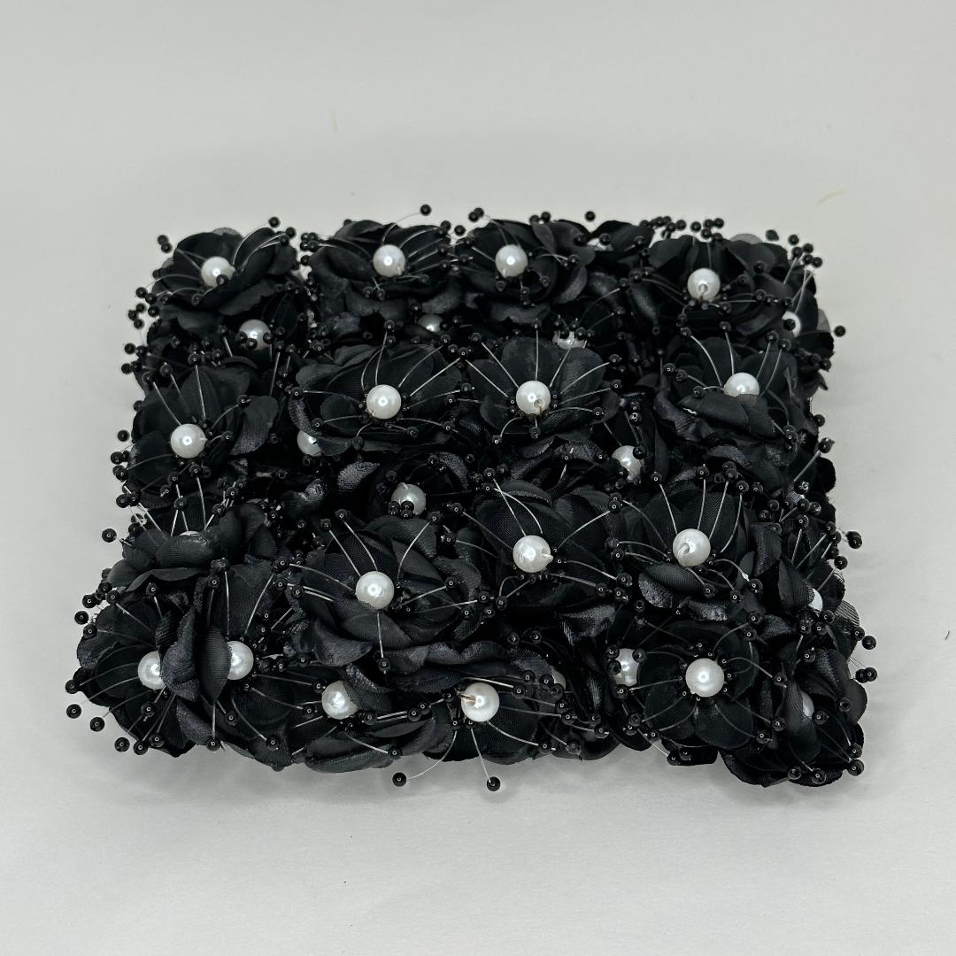 Organza and Satin Flower with Pearl Spray Black (72 Flowers)