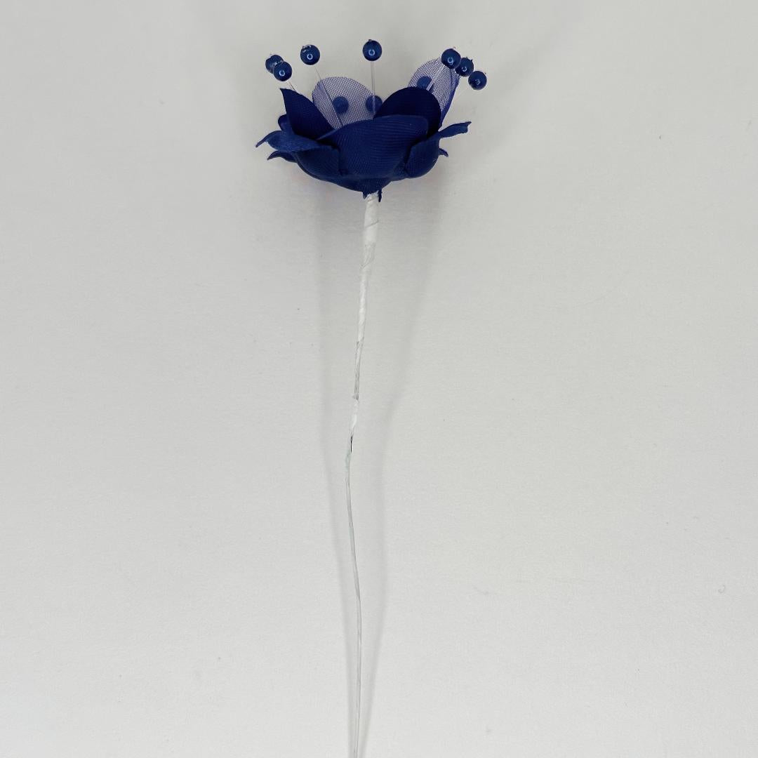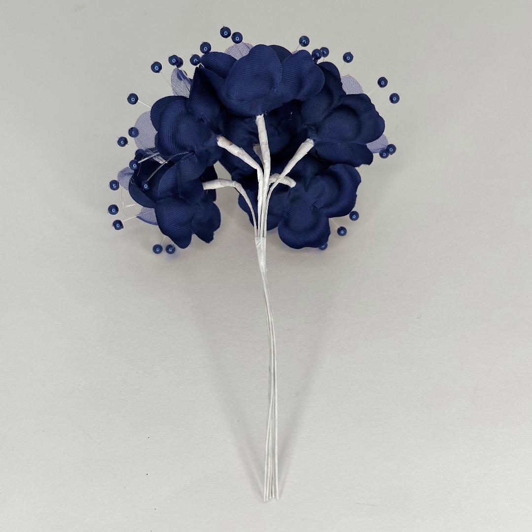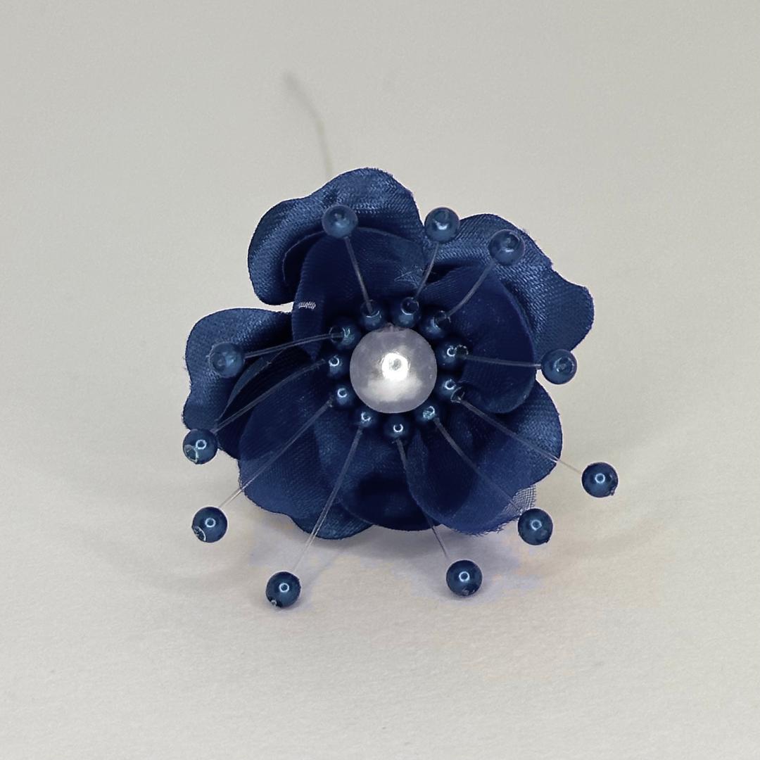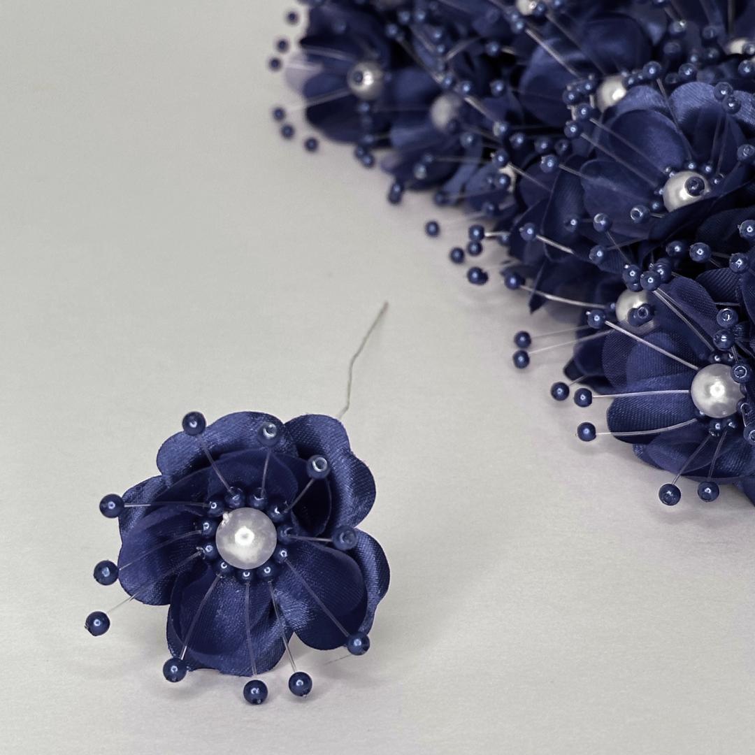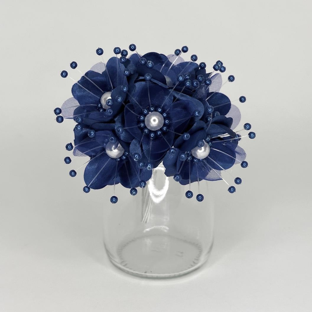 Organza and Satin Flower with Pearl Spray Navy Blue (72 Flowers)