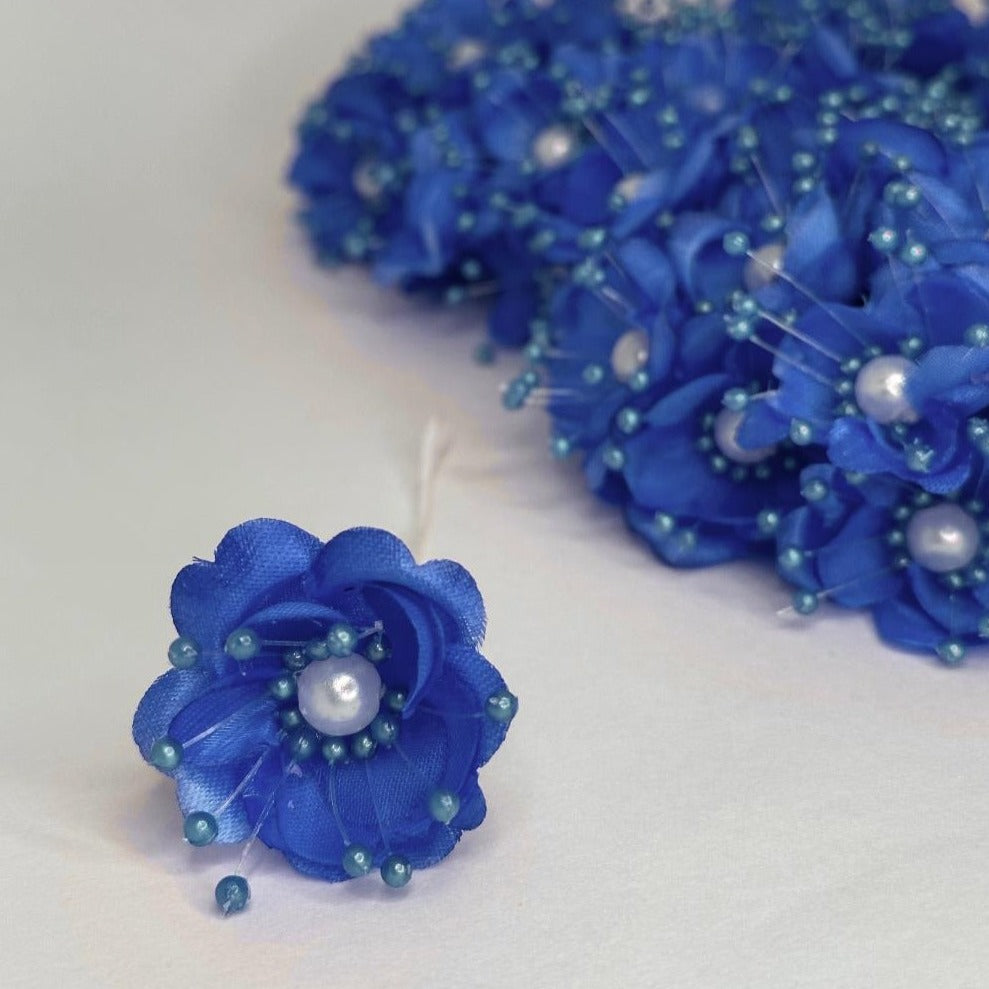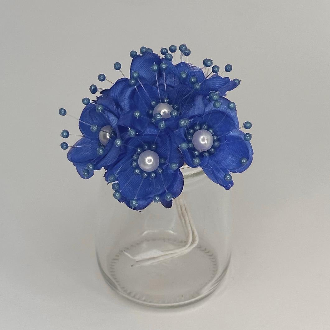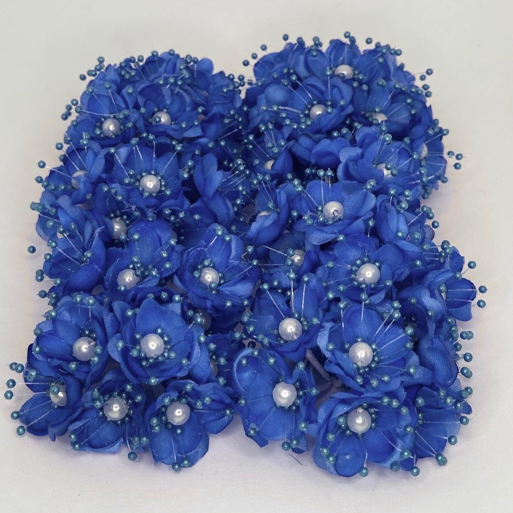 Organza and Satin Flower with Pearl Spray Royal Blue (72 Flowers)