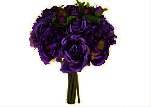 Rose Artificial Silk Flower Bouquet Dark Purple