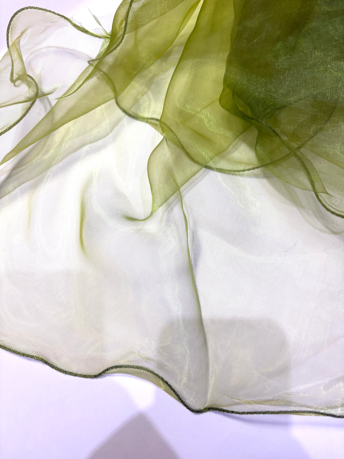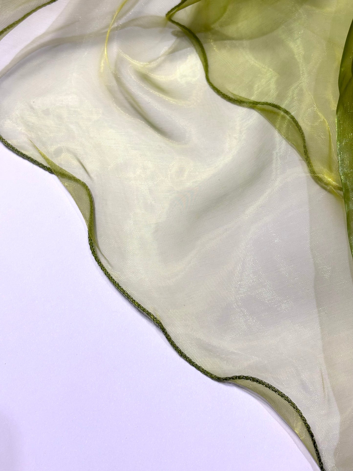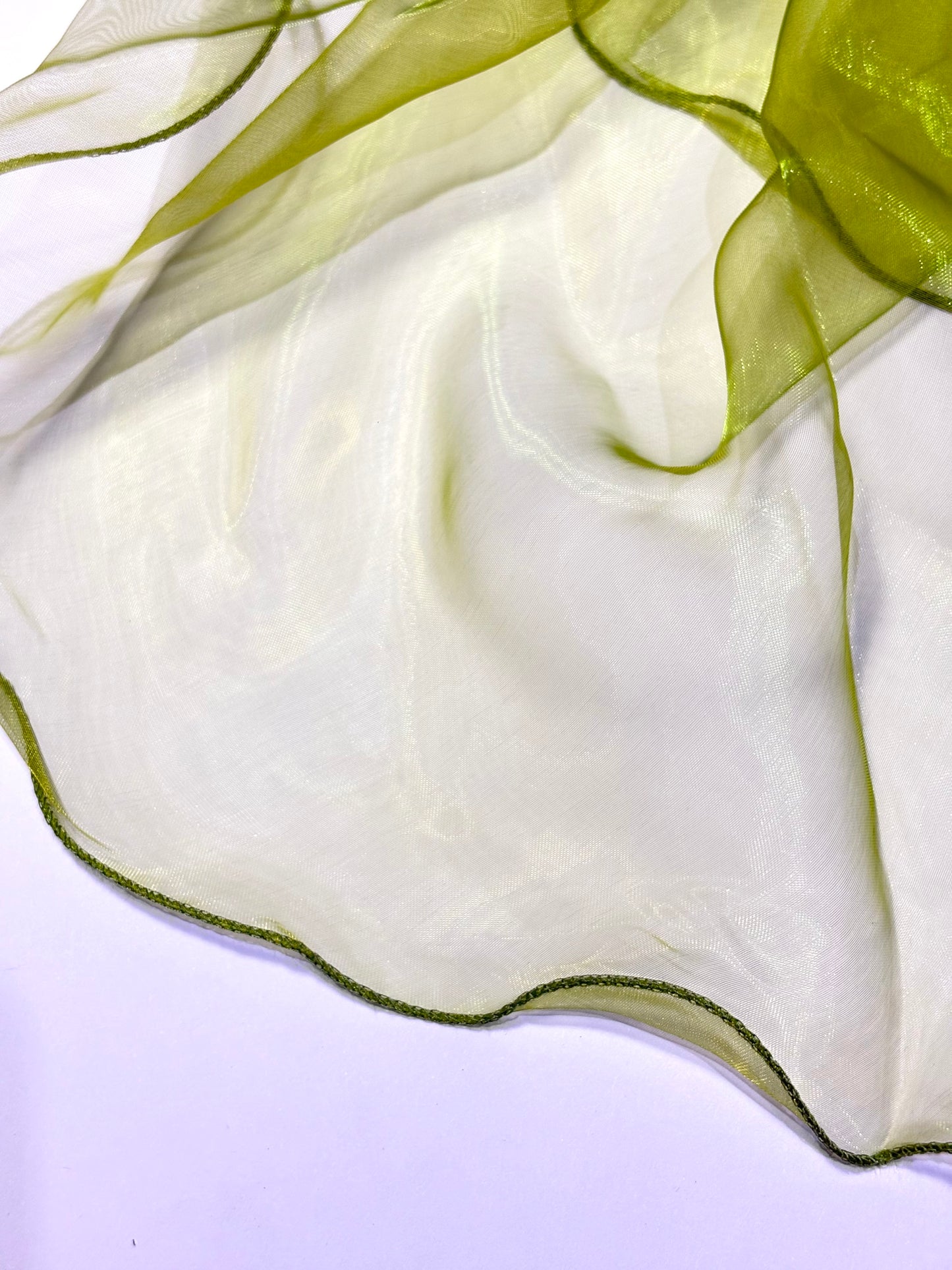 High-quality Seamless, ruffled edge sage organza table overlay. Uses for table cover overlay, wedding, parties, celebrations, or any special event.