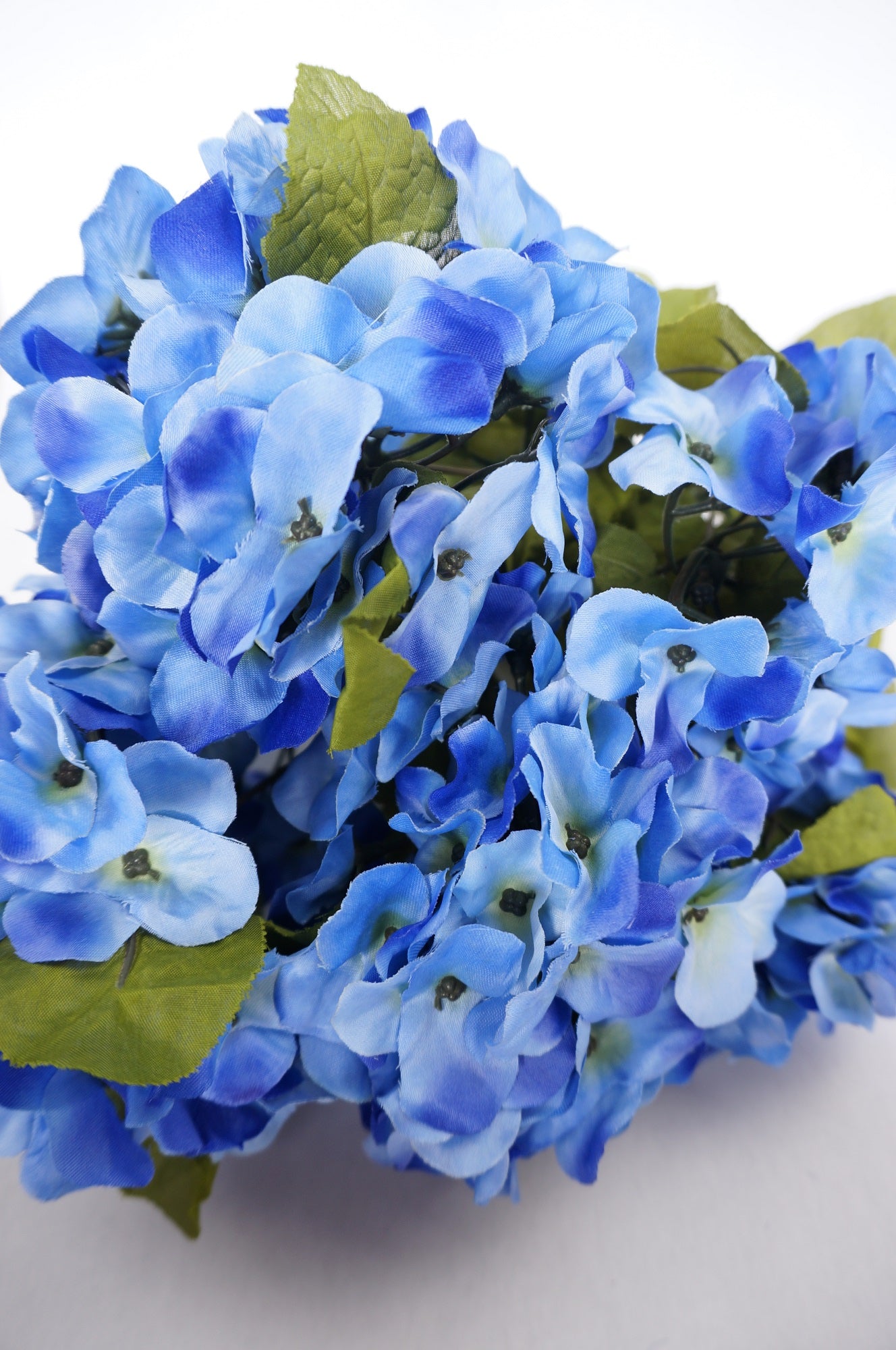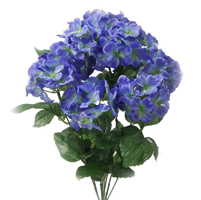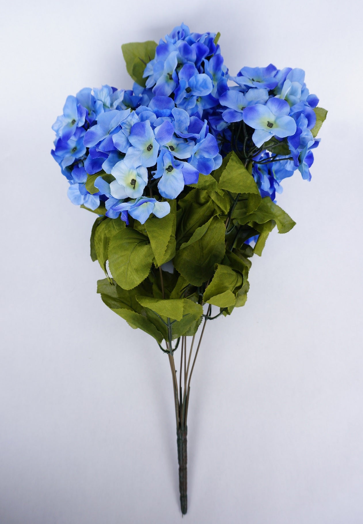 22 Inch X-Large Satin Artificial Hydrangea Silk Flower Bush 7 Heads Periwinkle Blue
