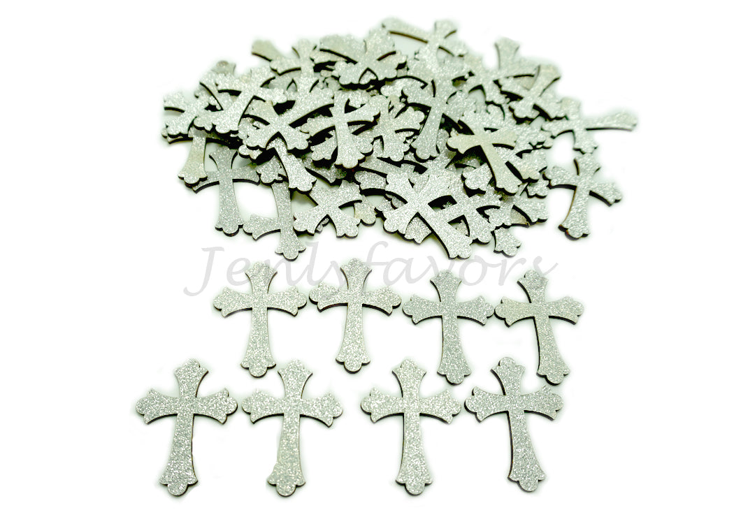 The Silver Glitter Wood Cross is perfect for decorating your wedding and religion party and centerpiece.