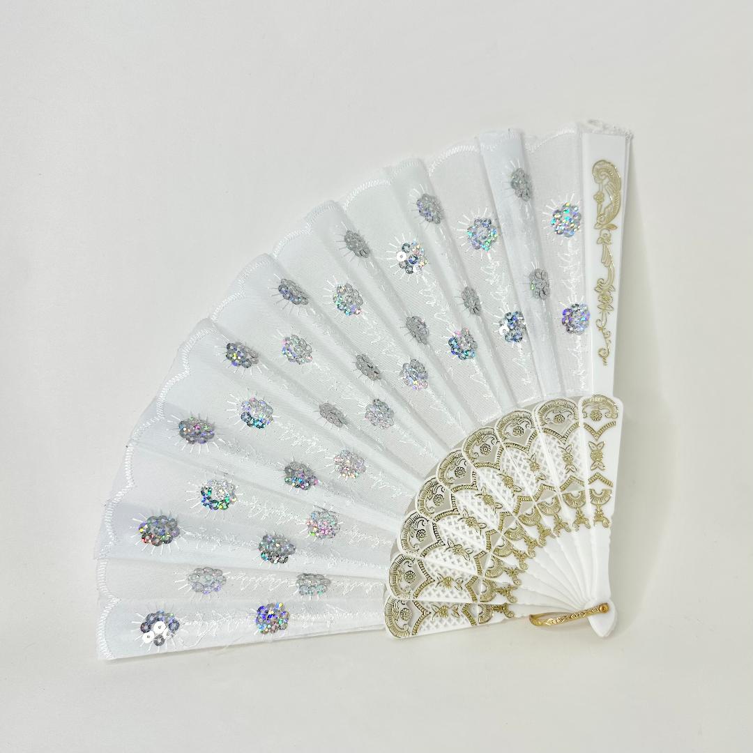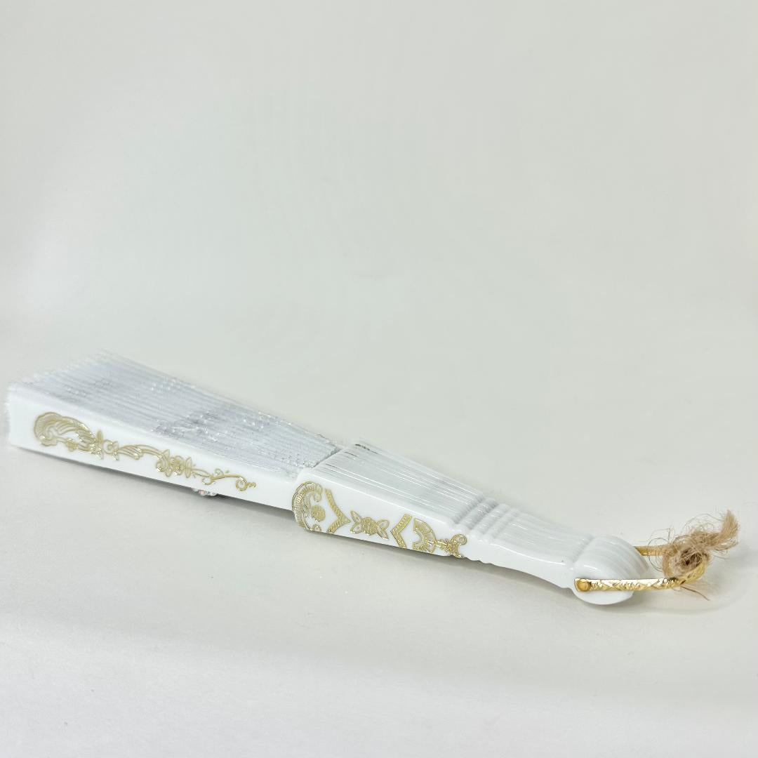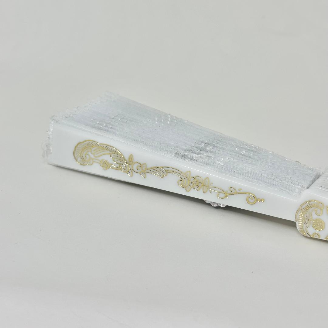 10 Pcs White Cloth Hand Fans with White Gold Plastic Handle